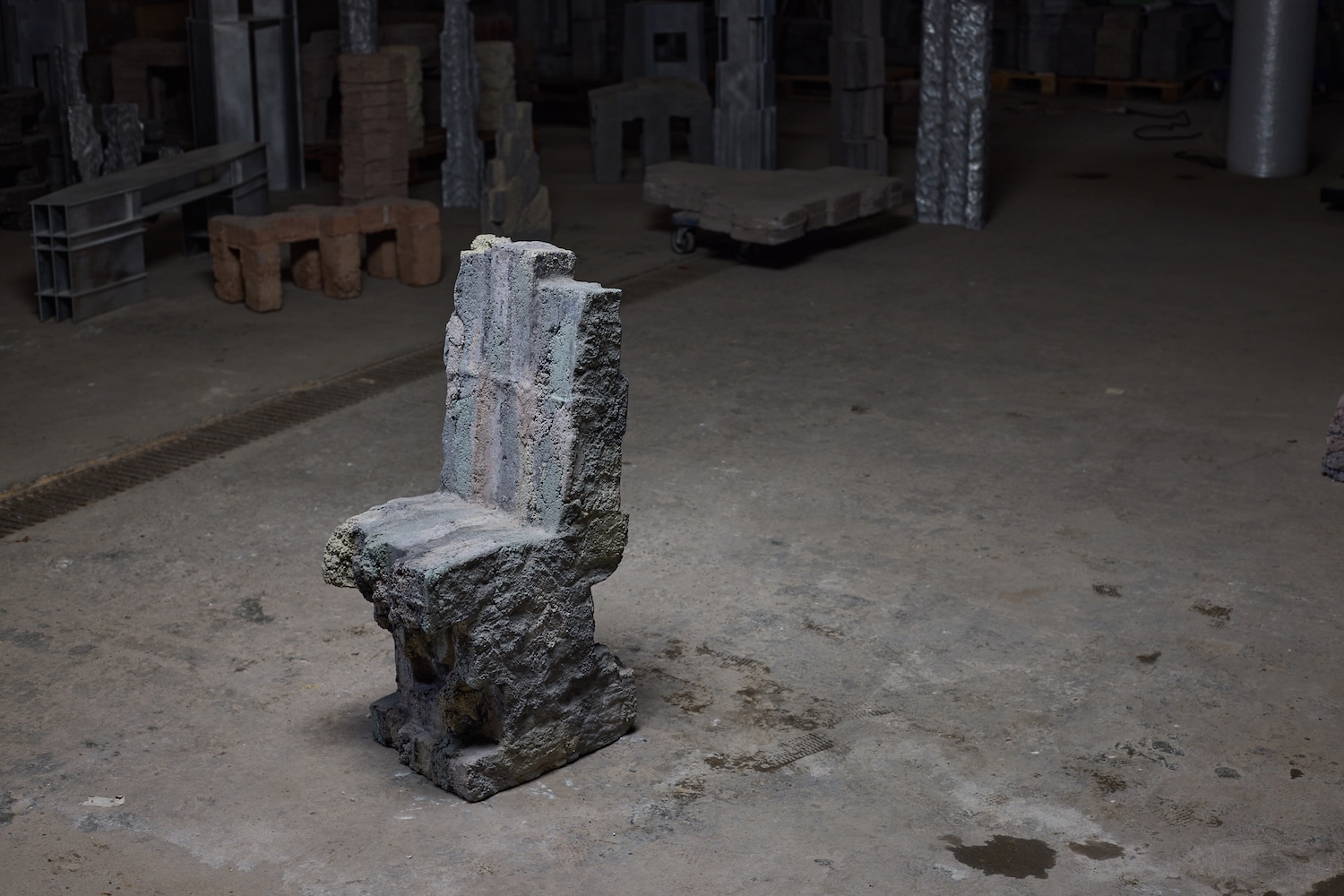 Brick Chair is a minimalist chair created by Ghent-based designer Bram Vanderbeke. Vanderbeke’s “Casted Objects” collection begins where most buildings do—at the foundation. Drawing inspiration from construction workers’ techniques for creating building foundations, he arranges regular bricks on his studio floor in compositions that balance mathematical precision with artistic intuition. These brick assemblages then serve as impromptu molds for concrete, transforming empty space into solid form.