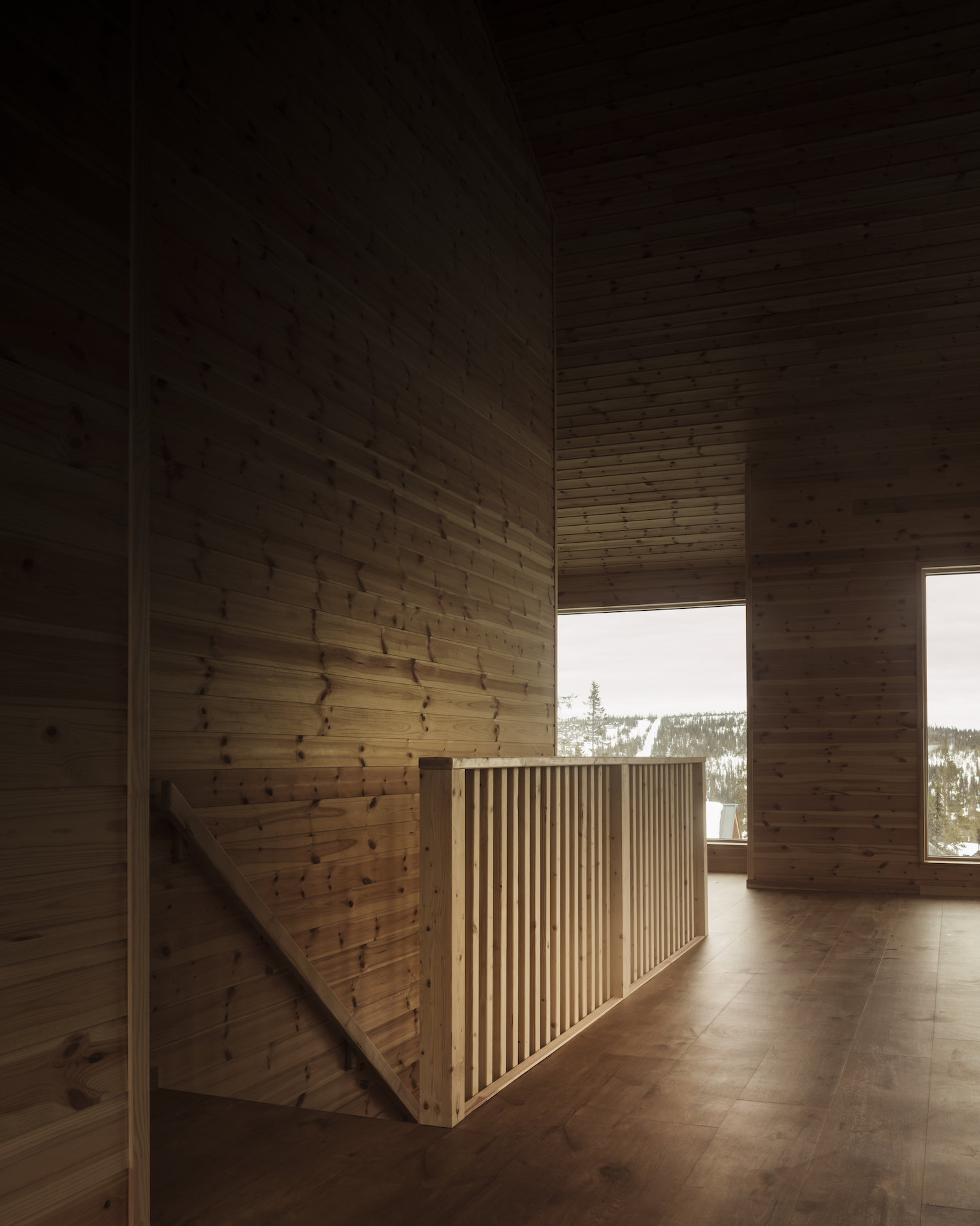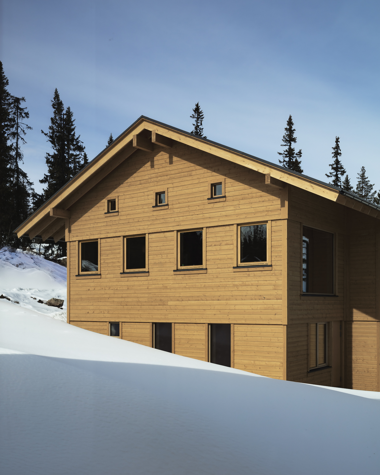 Vemdalen Villas is a minimalist home located in Härjedalen, Sweden, designed by Hesselbrand. This development is notable for its strategic placement that allows for direct access to skiing slopes and panoramic views of the encompassing valley. Each housing unit comprises a primary residence alongside a guest house, arranged in a manner that cultivates small communal outdoor areas and walking paths, thereby evoking the ambiance of a village rather than a conventional residential street. Constructed using prefabricated timber frames, the villas are distinguished by their pine facades and are sheltered by expansive metal roofs that extend beyond the structures’ walls.