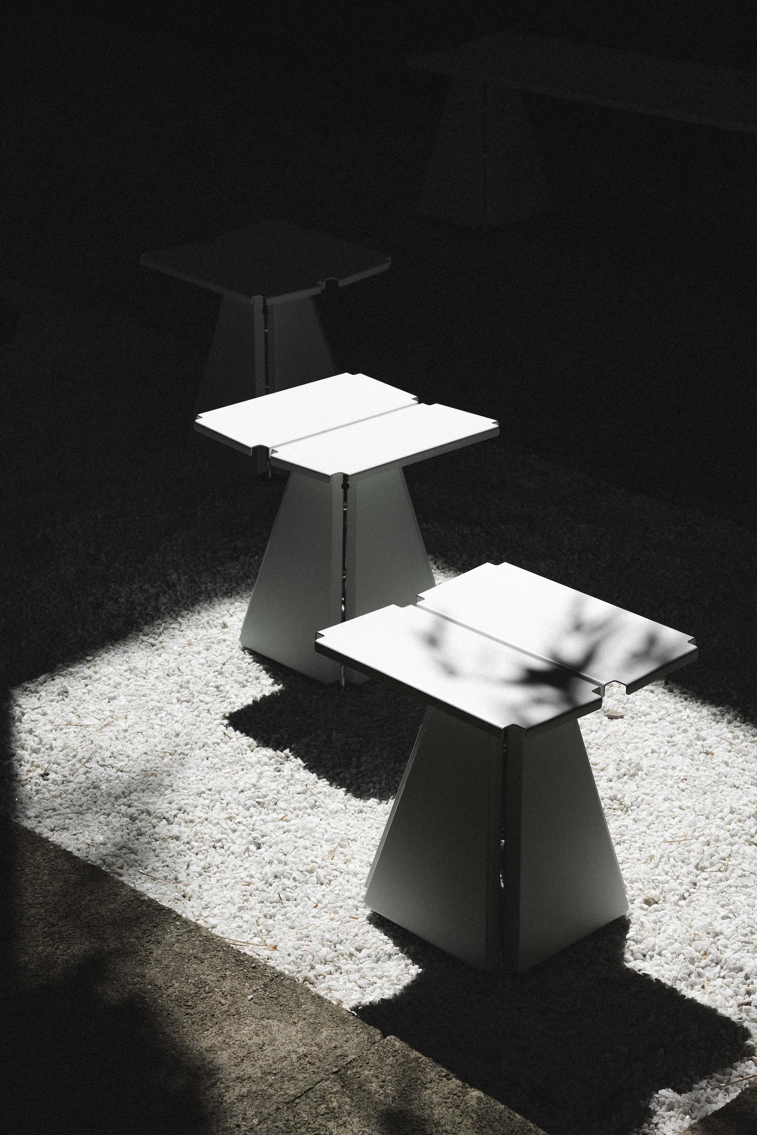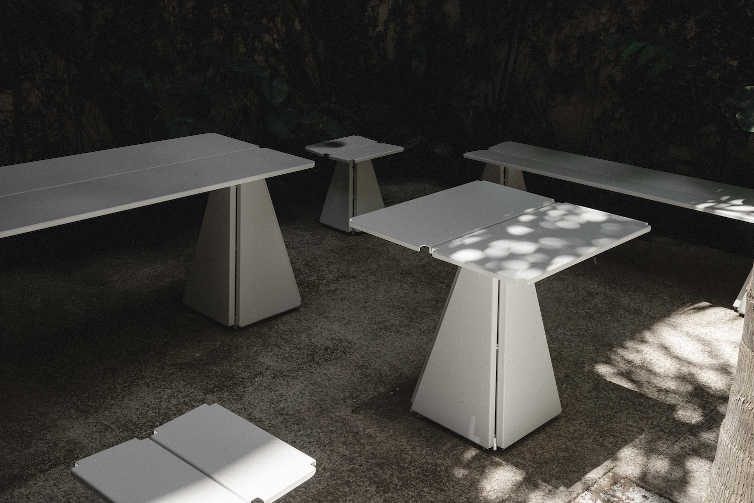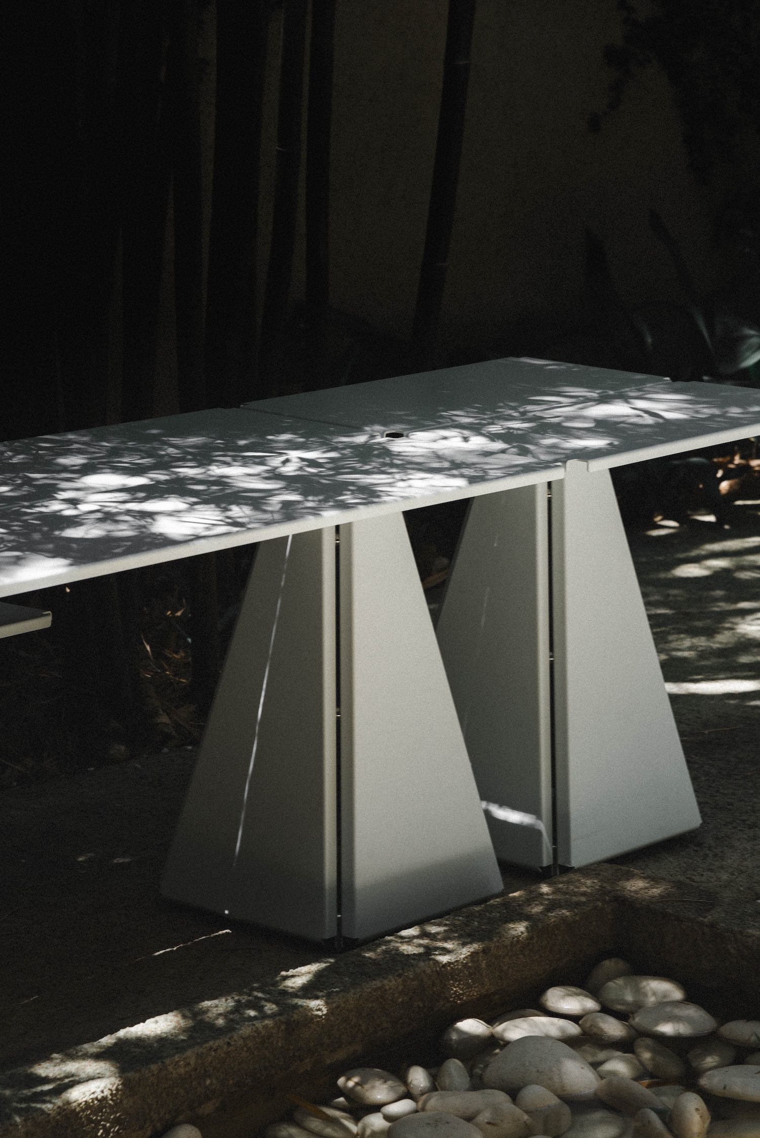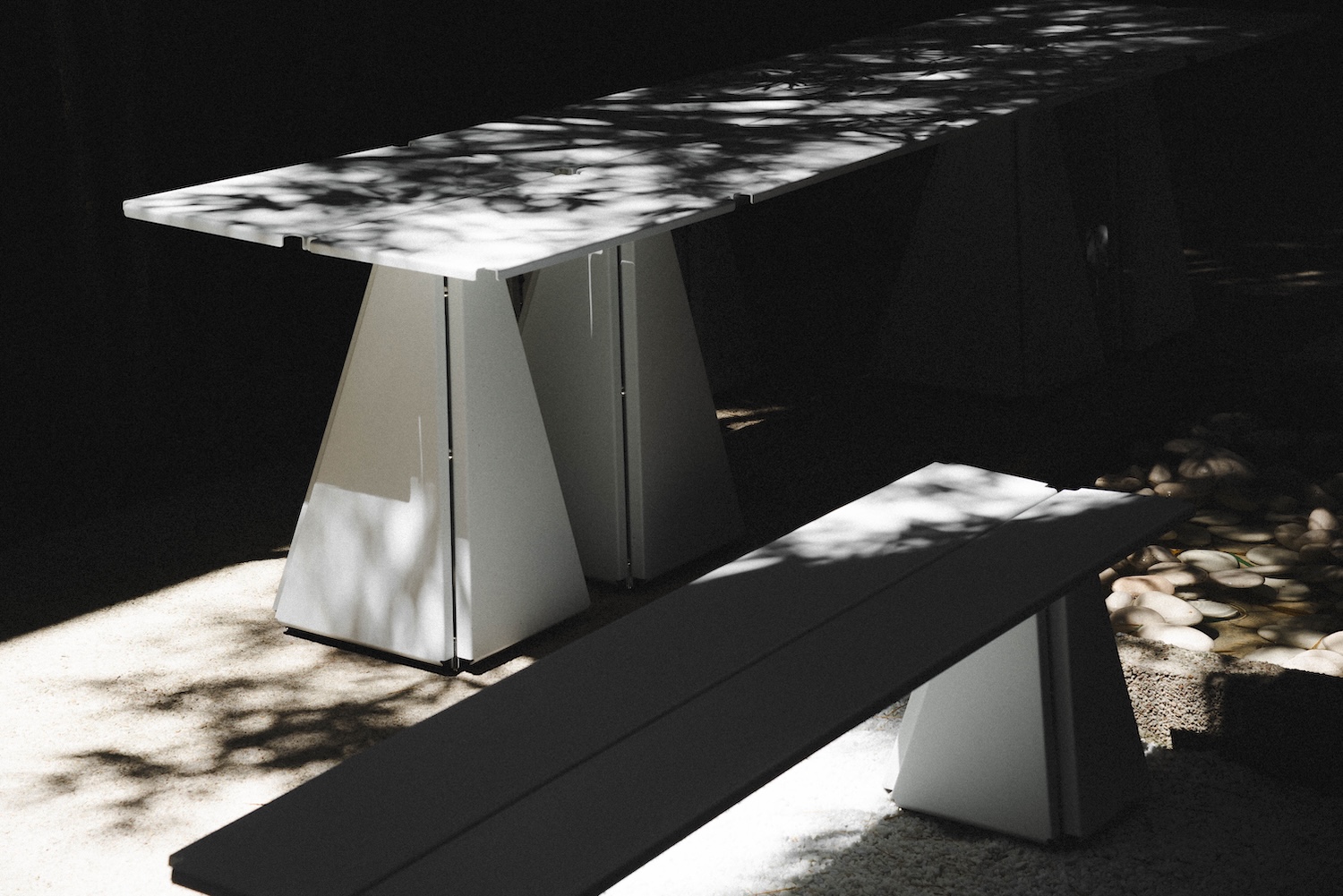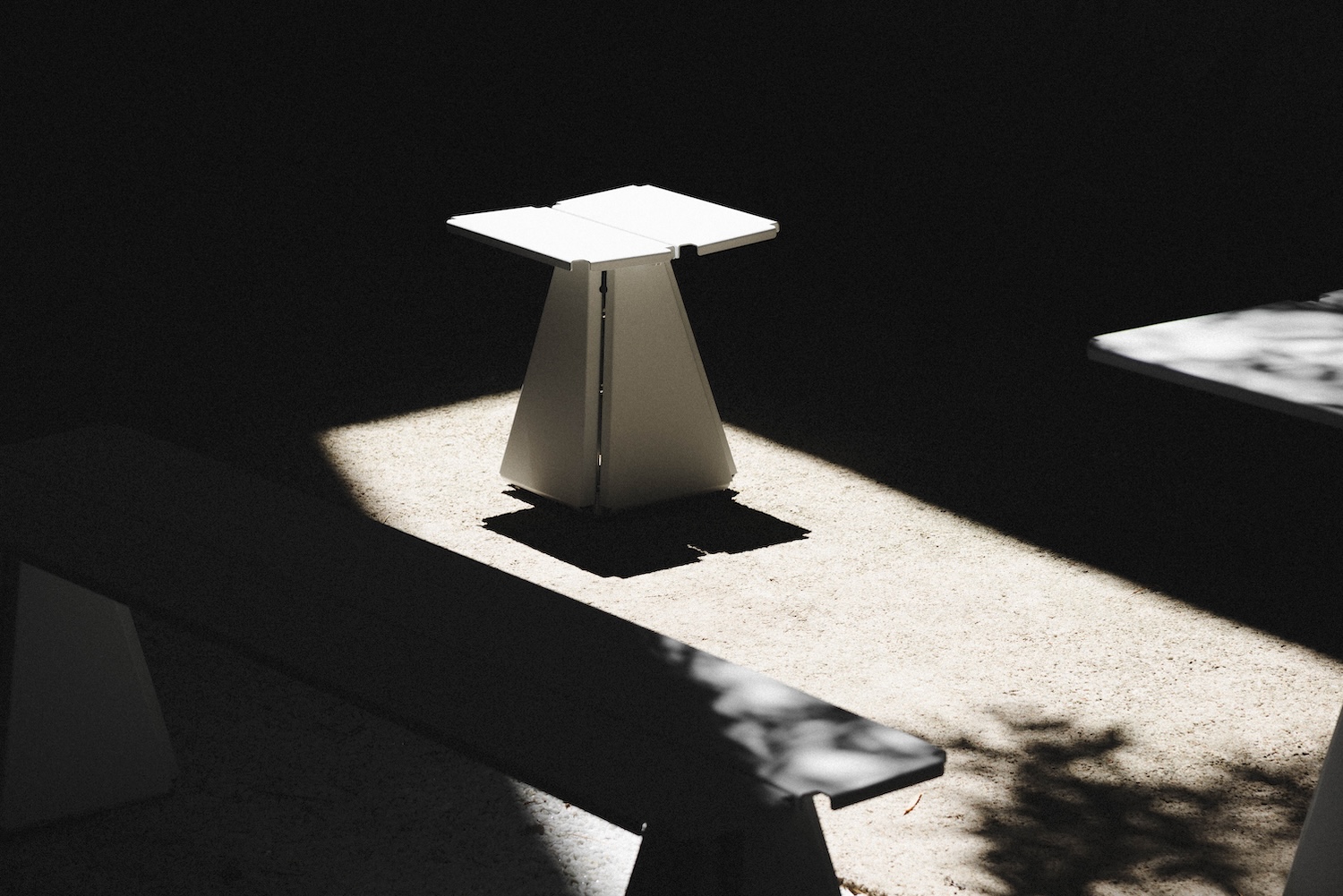 AO-25 is a minimalist furniture collection created by Buenos Aires-based studio Valuarte. In the stark geometries of Antonio Llambías’s AO25 Exterior Series, a conversation unfolds between the purposeful and the poetic. The galvanized steel pyramid doesn’t merely occupy space—it negotiates with it, establishing a dialogue between human precision and natural entropy. “I never intended to emulate or compete,” said the straight line. “I coexist.” This sentiment captures the essential philosophy behind this collection, where engineered forms acknowledge their relationship with the organic world rather than attempting to conquer it.