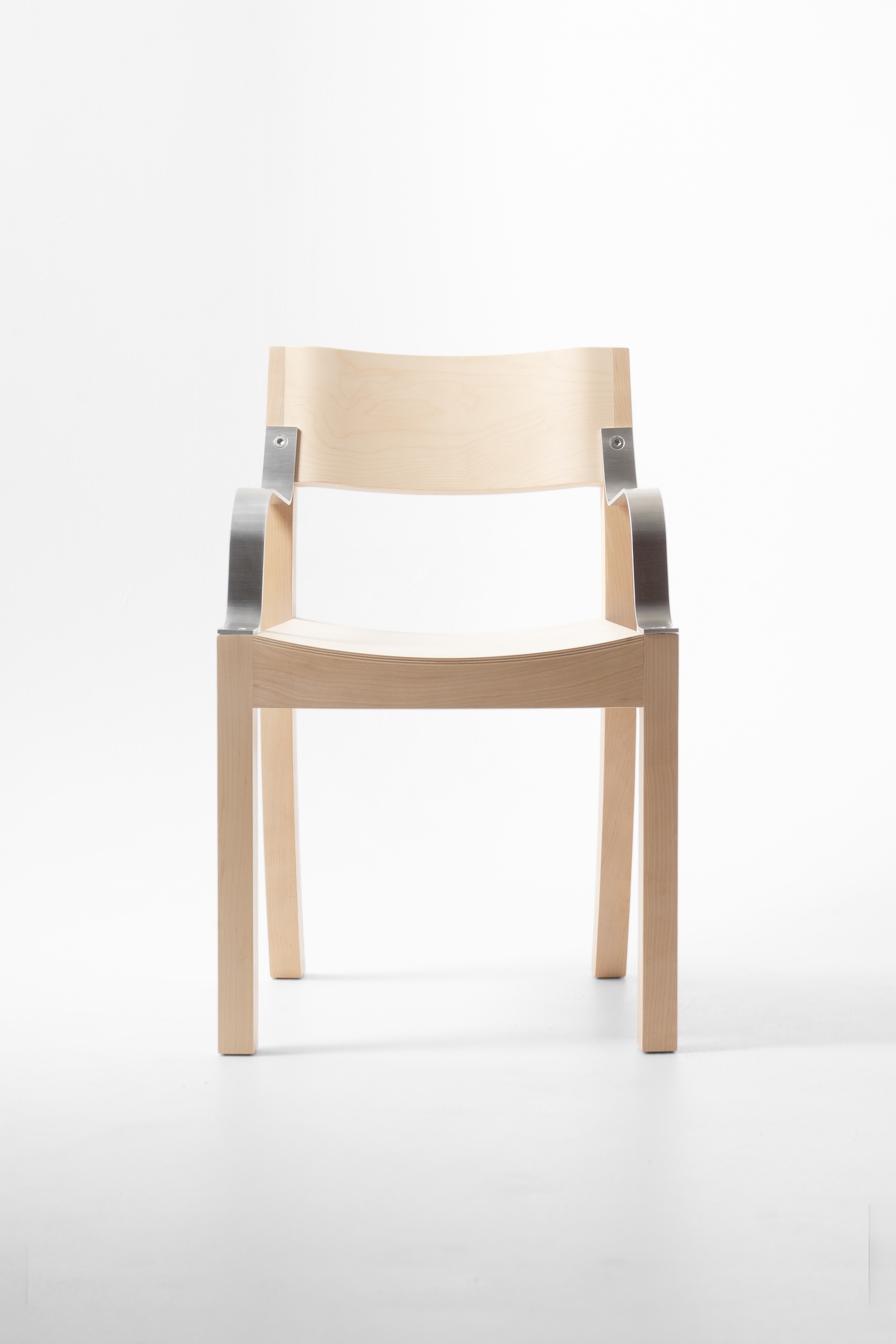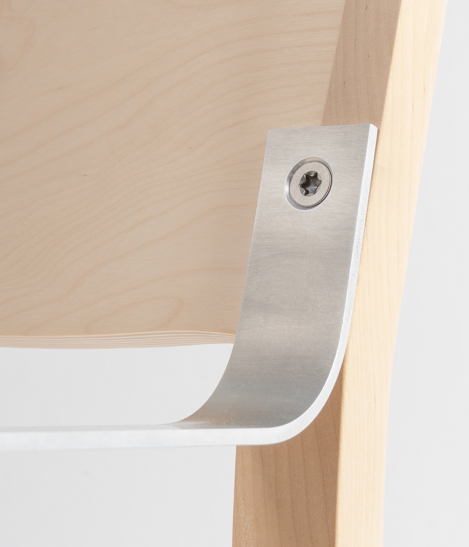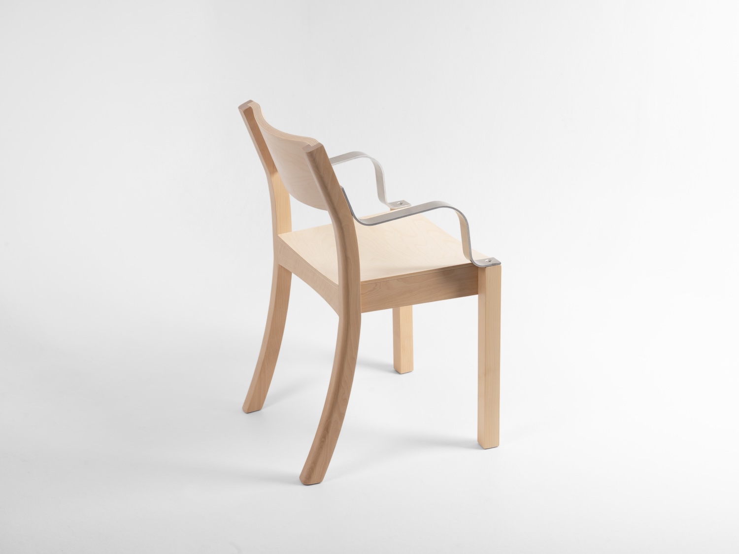 Belt Chair is a minimal chair created by Berlin-based designer Hayo Gebauer. A single wooden chair stands in a corner, its form deceptively simple until you notice the aluminum armrests—thin strips that curve with unexpected fluidity, catching light like silver ribbons frozen mid-motion. This is Studio’s Belt Chair, where the familiar warmth of beech meets the cool precision of raw aluminum in a conversation about support, craftsmanship, and materiality.