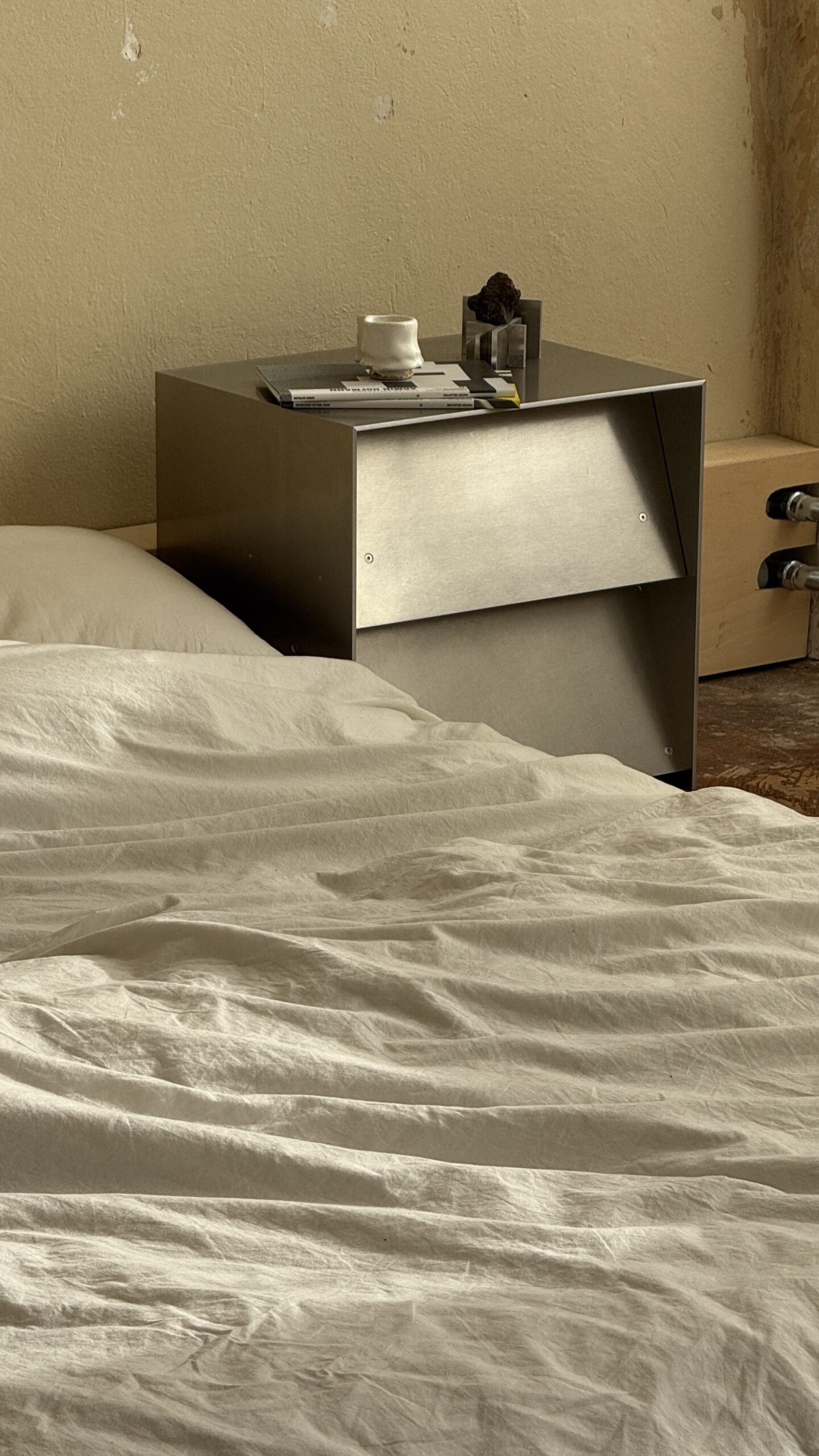 Drawer 440 is a minimalist furniture piece designed by Berlin-based designer Jakub Kubica. This handmade modular storage system is crafted in an atelier near Berlin from durable aluminum, with each piece hand-sanded and polished with natural beeswax creating a fingerprint-resistant finish with unique imperfections that testify to its artisanal origins. Designed as a modular system, the piece can be used individually as a bedside table or combined with multiple modules to create consoles, shelving walls, or room dividers.