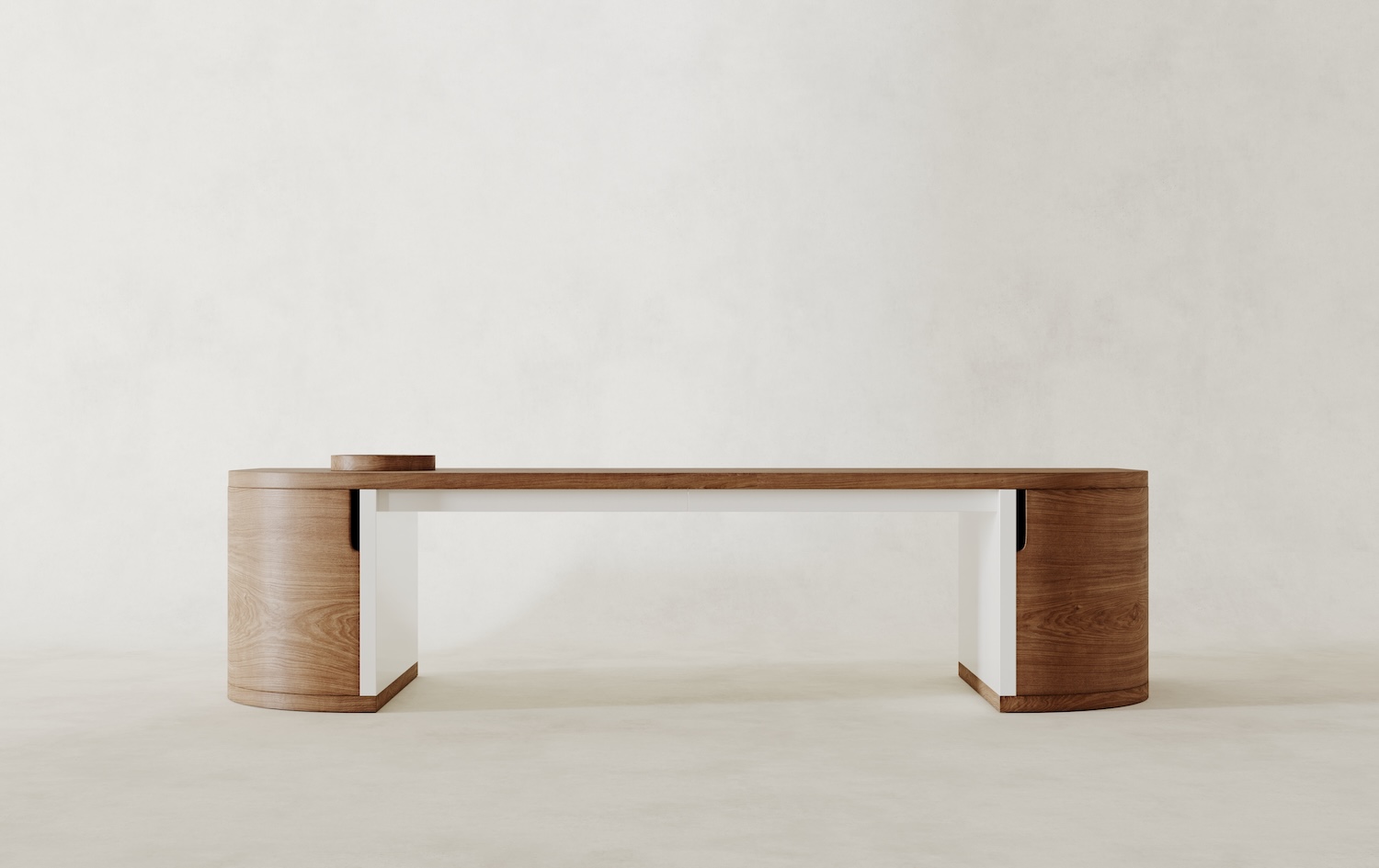 FI04 Desk is a minimal desk from the new Fiori Collection designed by Paris-based designer Francesco Balzano for STUDIOTWENTYSEVEN. Drawing from the structured beauty of historic Italian landscapes, the collection reimagines the symmetry and order of these cultivated spaces, reducing their complexity into minimalist compositions. Negative space plays a key role in these works, highlighting an interplay between form and absence that is as deliberate as the physical structures themselves. The collection’s designs echo the clarity and proportion of Italy’s Rationalist architecture, where simplicity and symmetry create an enduring sense of balance.