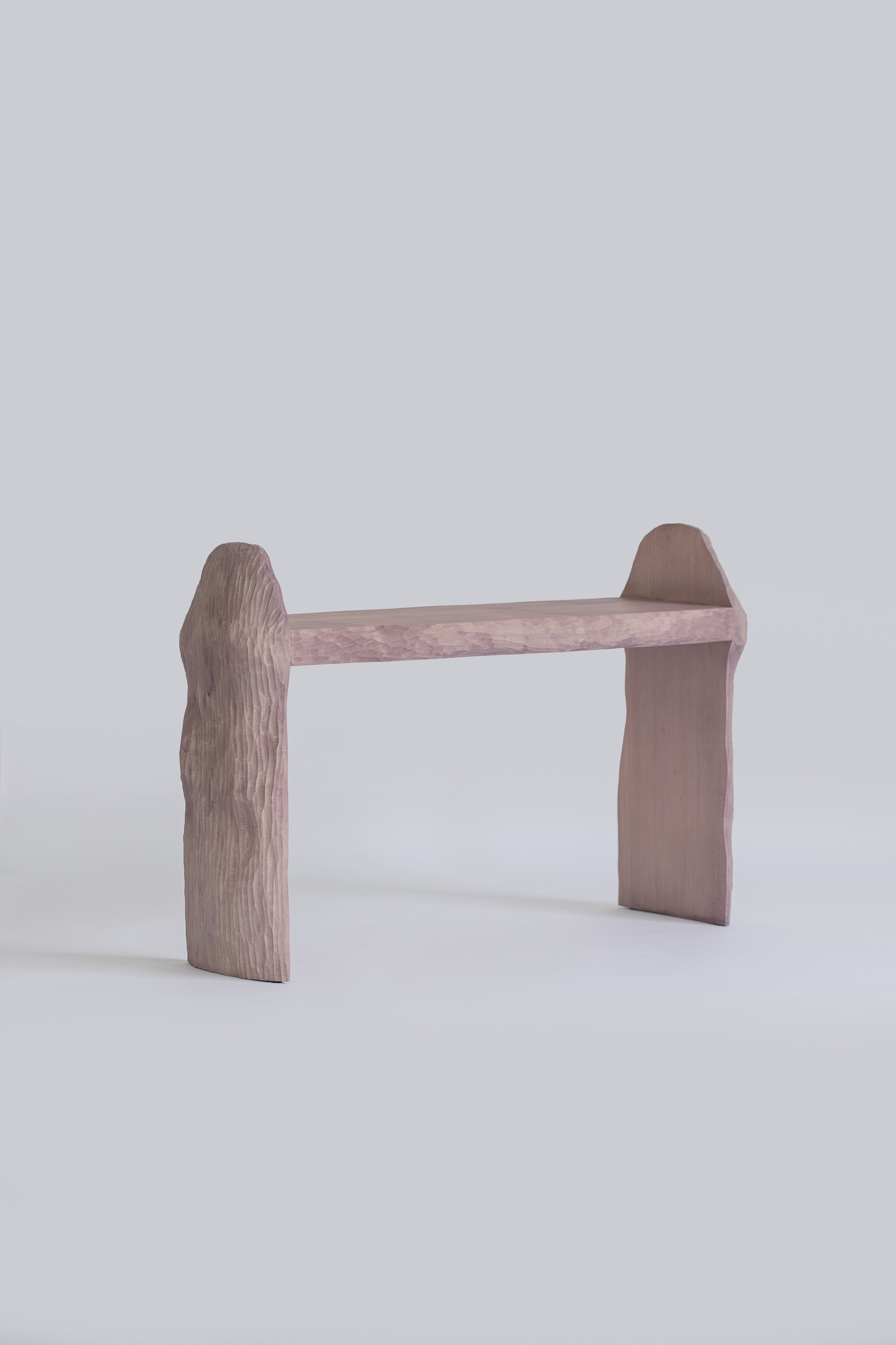 After careful carving, each Intuitive Archaism piece is finished with pastel colors derived from natural plant dyes which yield a range of approachable hues from soft greens, peaches, and warm purples.