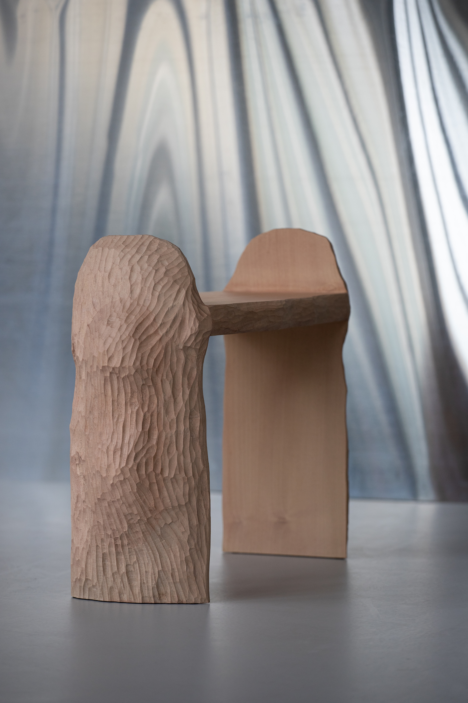Intuitive Archaism is a minimalist furniture collection by the Sèvres-based design and sculpture practice, Atelier Cedric Breisacher. Featuring a series of side tables, shelves, and stools, each piece within the collection is hand-carved from local forest wood and is an ode to the atelier’s founder, Cedric Breisacher’s meditative process of creating a dialogue with traditional hand tools and materials.