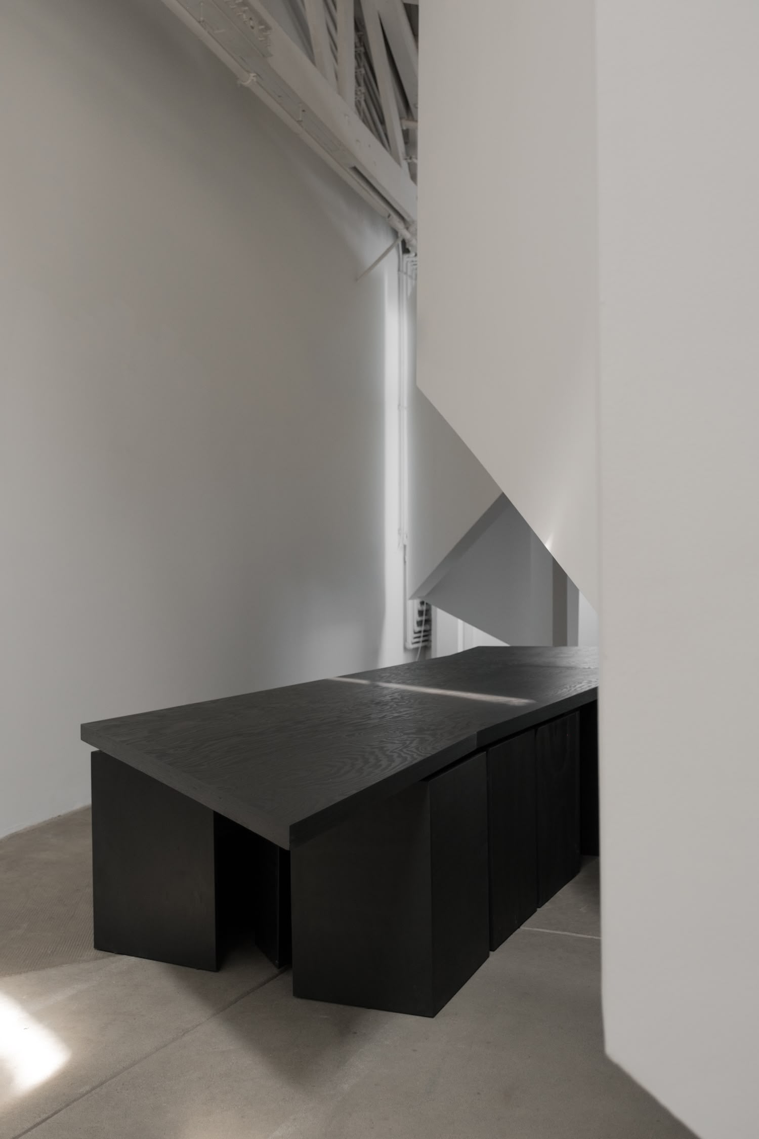 In its formal restraint, ‘Oeuvre’ recalls the minimalist sculptures of Donald Judd, yet its functionality aligns it with more recent movements in collectible design where utility and artistry achieve perfect equilibrium. The dining table’s transformation into a sculptural presence when not in use suggests a future where our domestic objects might regularly perform this kind of spatial double-duty, adapting to our needs while maintaining their artistic integrity.