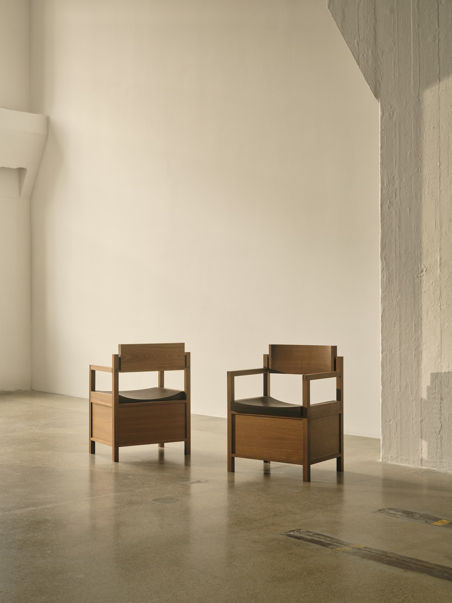 Materially, the choice of smoked oak connects to Scandinavian design traditions while the oil finish ensures the piece will age with dignity, developing a patina that records its journey through time and space. The handmade brass screws create subtle points of warm reflection against the rich darkness of the wood—small moments of craft consciousness that signal human involvement in the making process.