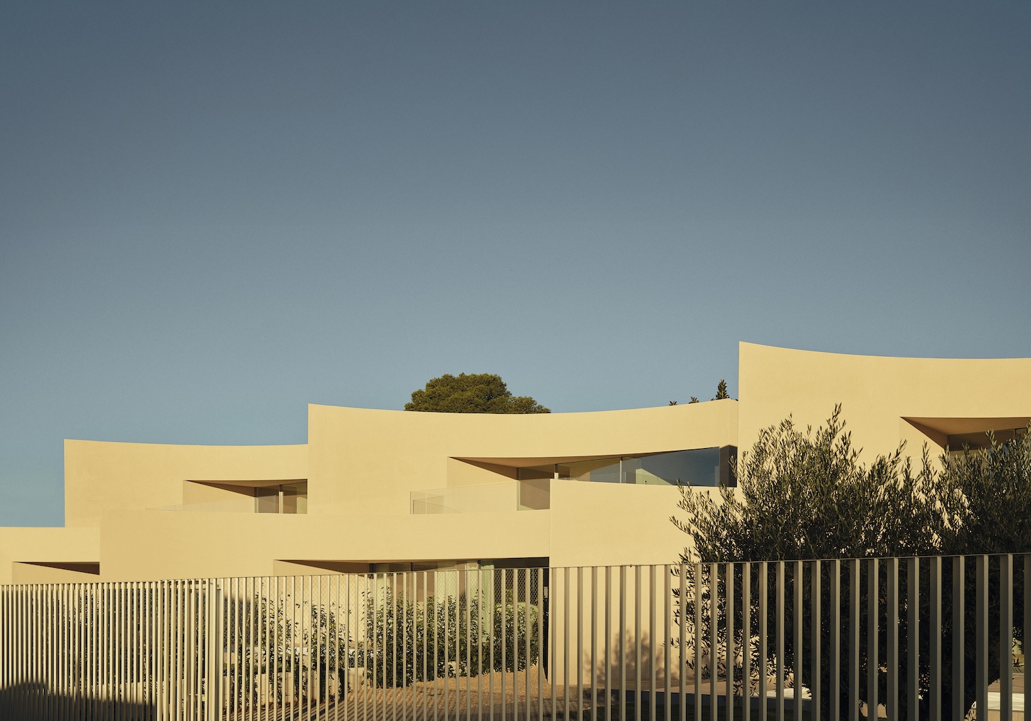 The curved volumes emerge from a deliberate analysis of site conditions, orientation, and scale. These formal decisions respond to environmental factors while maintaining a restrained expression that avoids the sculptural excess often associated with contemporary residential work. The geometry serves functional purposes – optimizing solar exposure, defining outdoor spaces, and creating visual rhythm across the development – while establishing a distinct identity within the broader context of Valencia’s residential landscape.