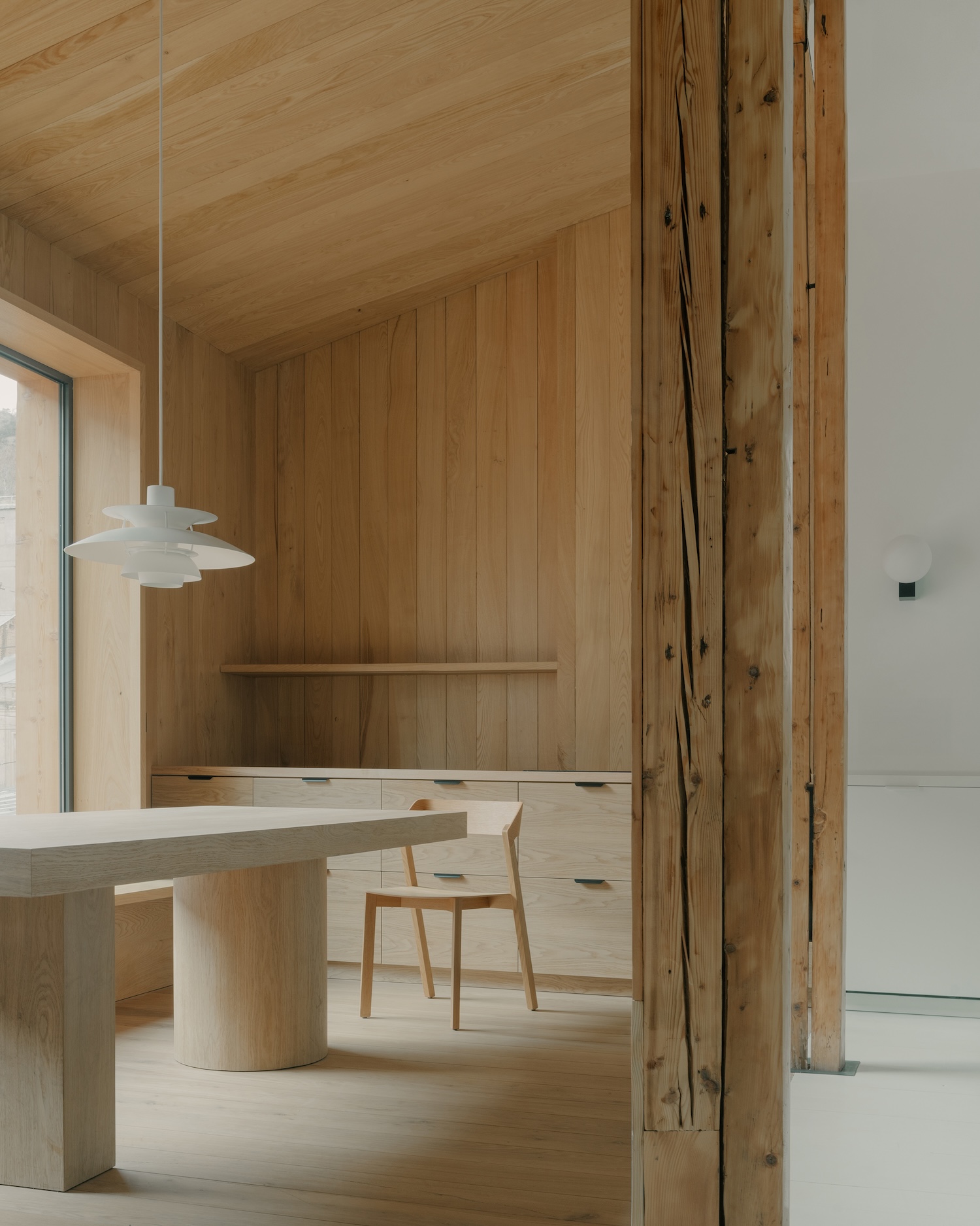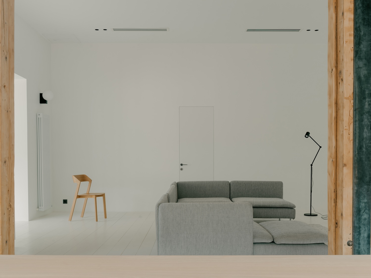 Birds Nest House is a minimalist home located in Tbilisi, Georgia, designed by TIMM Architecture. The interior is defined by a clean white palette that directs attention to a wood-clad dining area, serving as a visual highlight. Situated in the Mtatsminda district of Tbilisi, near the funicular’s lower station, this attic occupies the space above a 19th-century historical building. The owner, a descendant of one of the original residents, showed particular care for the construction details, preserving the building’s story and its evolution.
