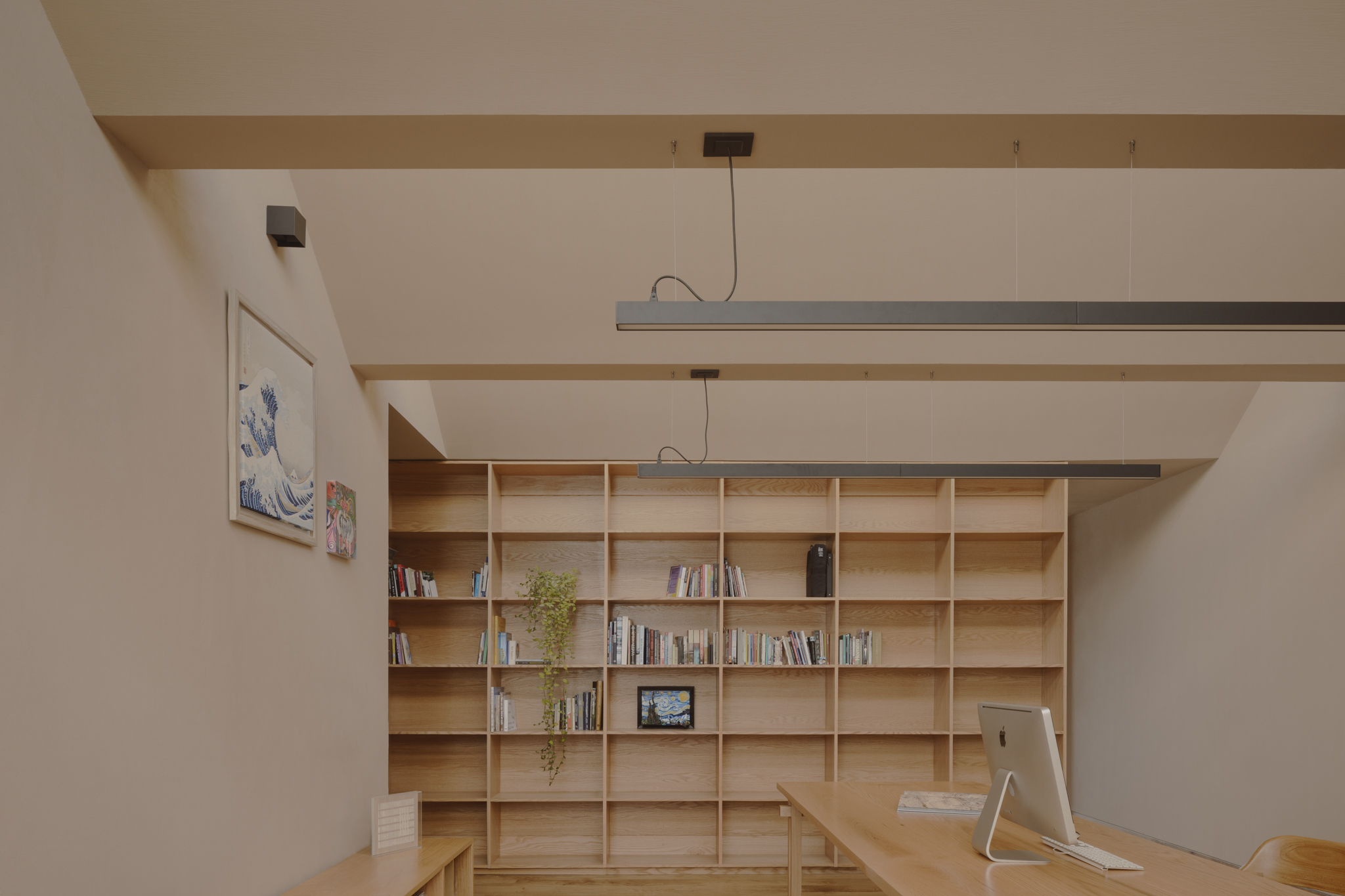 Private and semi-public spaces include south-facing bedrooms, a north-facing home office, and a ceramics workshop. The workshop, completely open, connects to a terrace with a double-height view, while the office on the top floor links to a smaller terrace, both spaces benefitting from indirect light to create a calm, productive environment. The design culminates in a rooftop garden, offering a meditative space surrounded by vegetation. Maximizing permeable areas, the home achieves an impressive 80% thanks to its terraces and gardens. The public spaces maintain a grand scale while adhering to local building height restrictions by partially burying the ground floor after soil analysis.