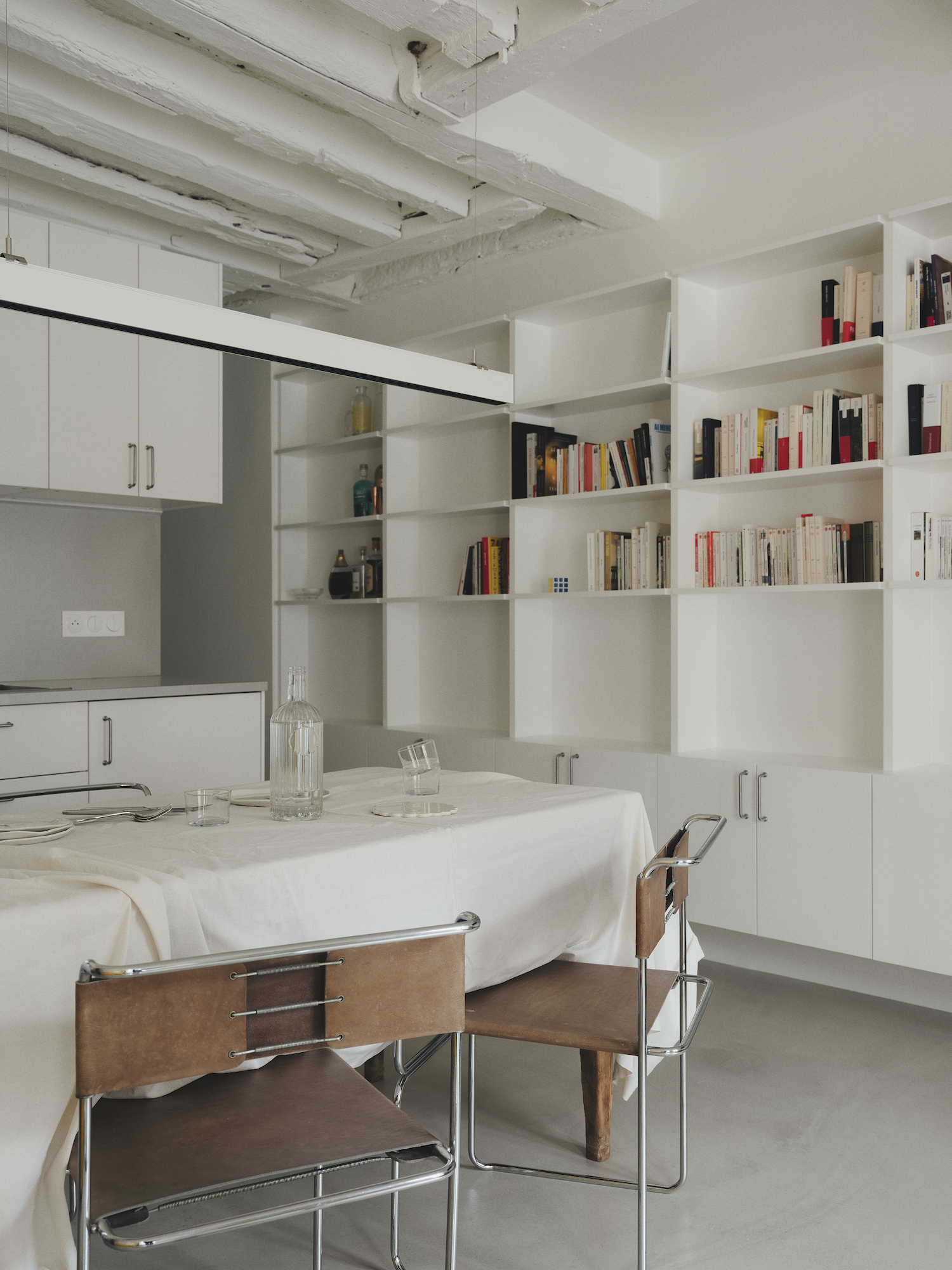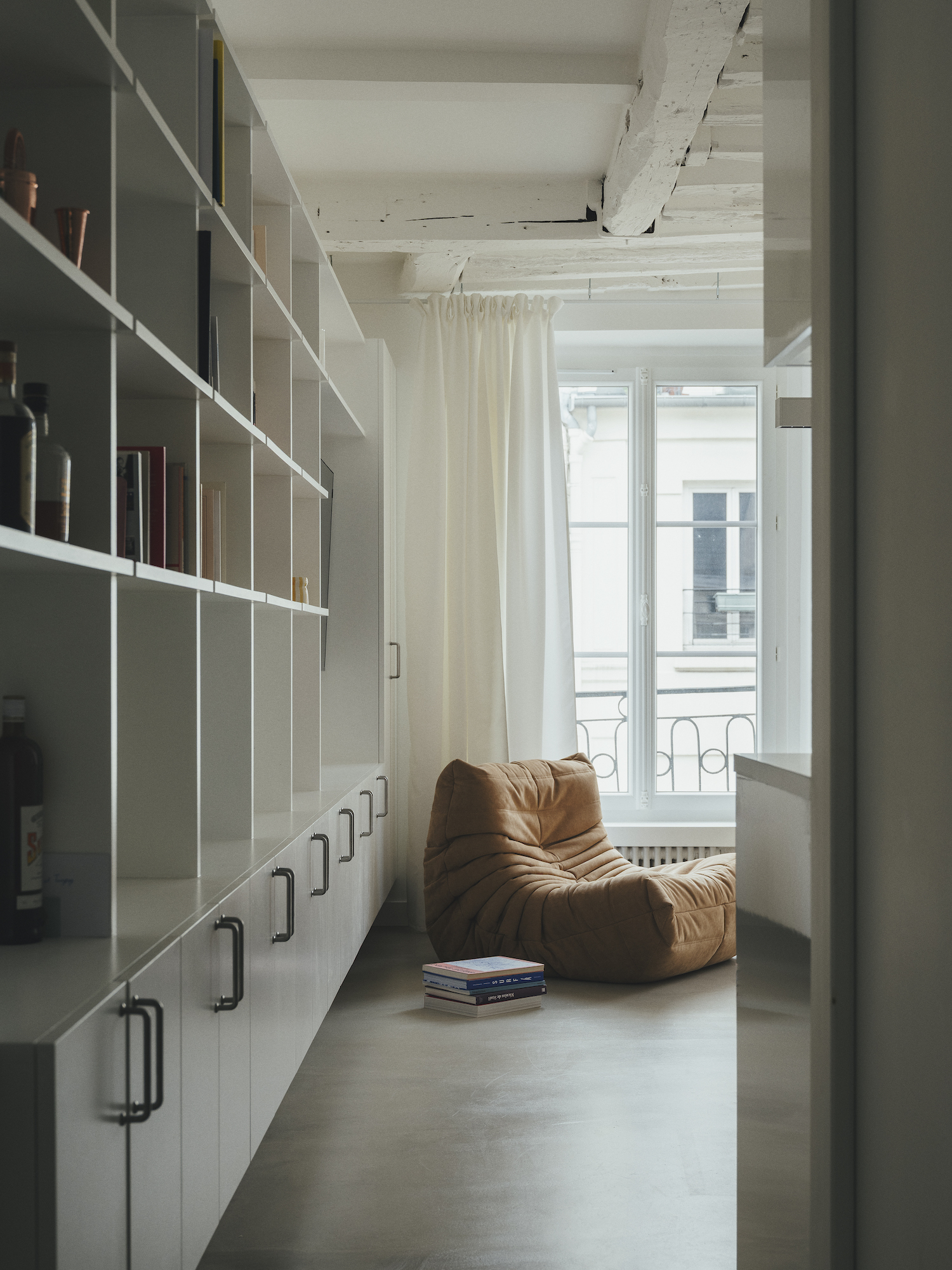 The Châtelet Apartment is a minimalist residence by the Paris-based architecture practice PS Studio. Located in the heart of Paris, the 45 square meter (484 square foot) apartment is designed as a quiet retreat within one of the city’s most active neighborhoods. The project maximizes its compact footprint while offering a sense of calm and reflection, balancing spatial efficiency with a restrained, tactile atmosphere.