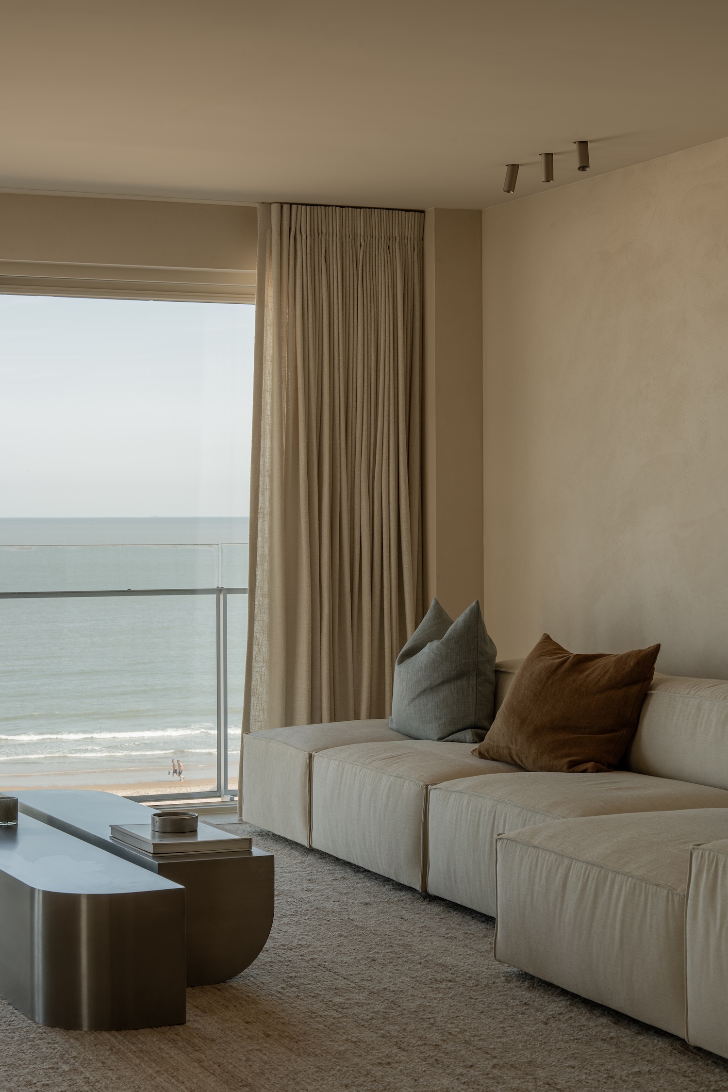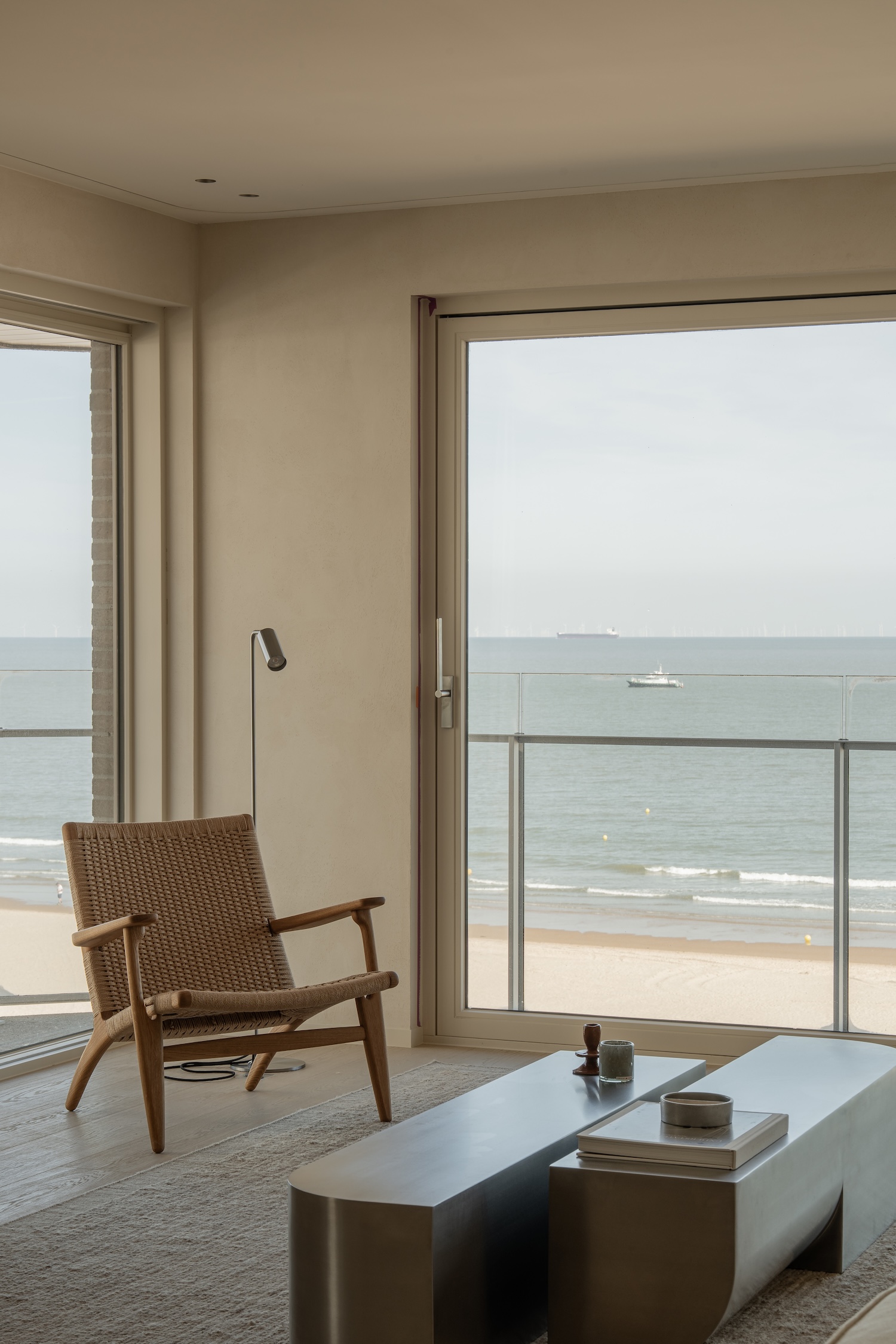 Claridge is a minimalist home located on the Belgian coast, designed by Julie De Vos – OIA concepts, and developed in close collaboration with Unidevelop Projects. When confronted with the ungainly reality of existing low-hanging pipes, the design team chose not to mask or minimize these infrastructural intrusions but to choreograph them into a new architectural language. The pipes became the conductors of a spatial symphony, their necessary routes inspiring gentle, rounded transitions that flow like tidal currents through the interior. Here lies the deeper craft insight: true design mastery reveals itself not in the absence of constraints but in their elegant transformation into organizing principles.