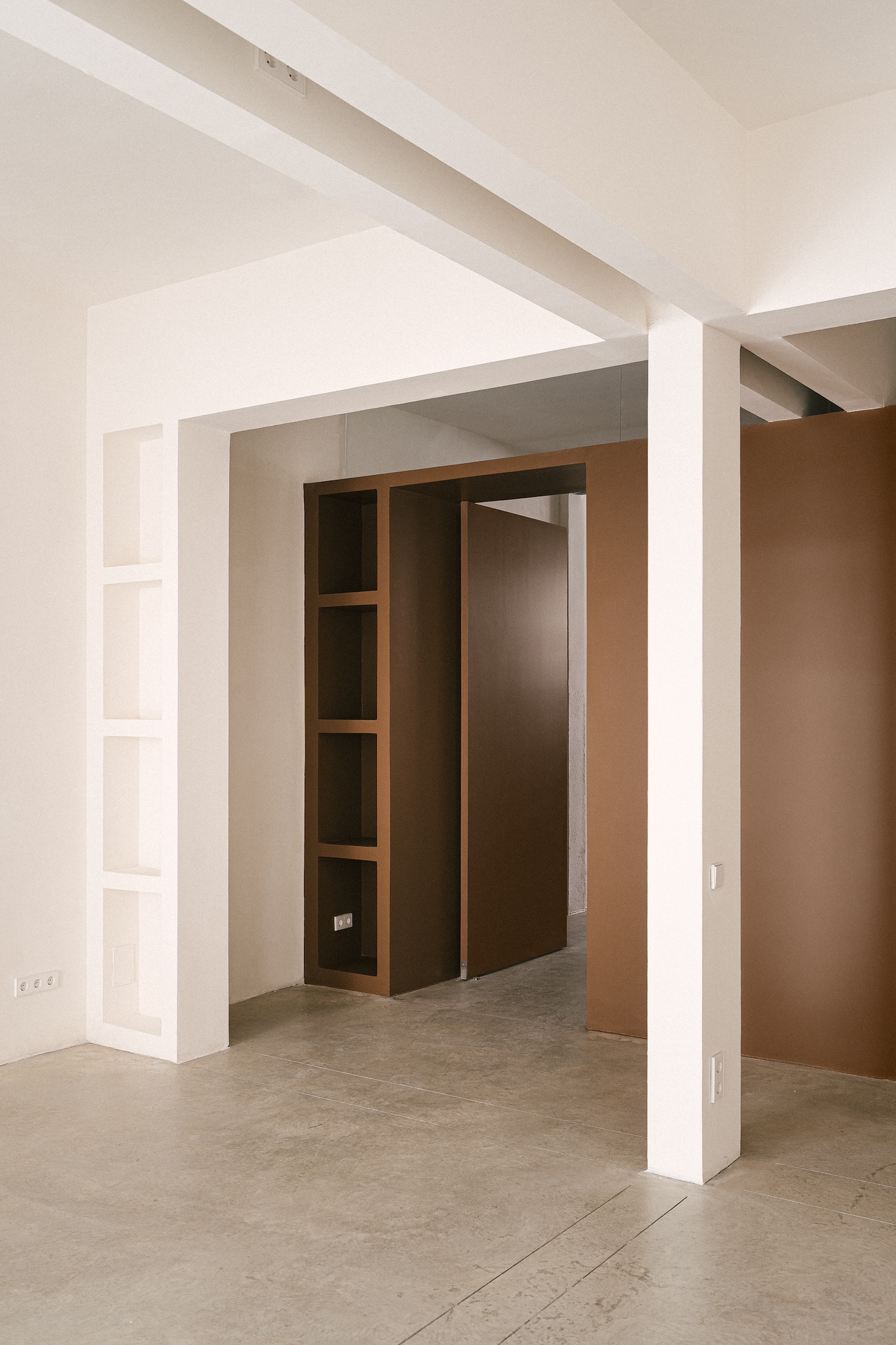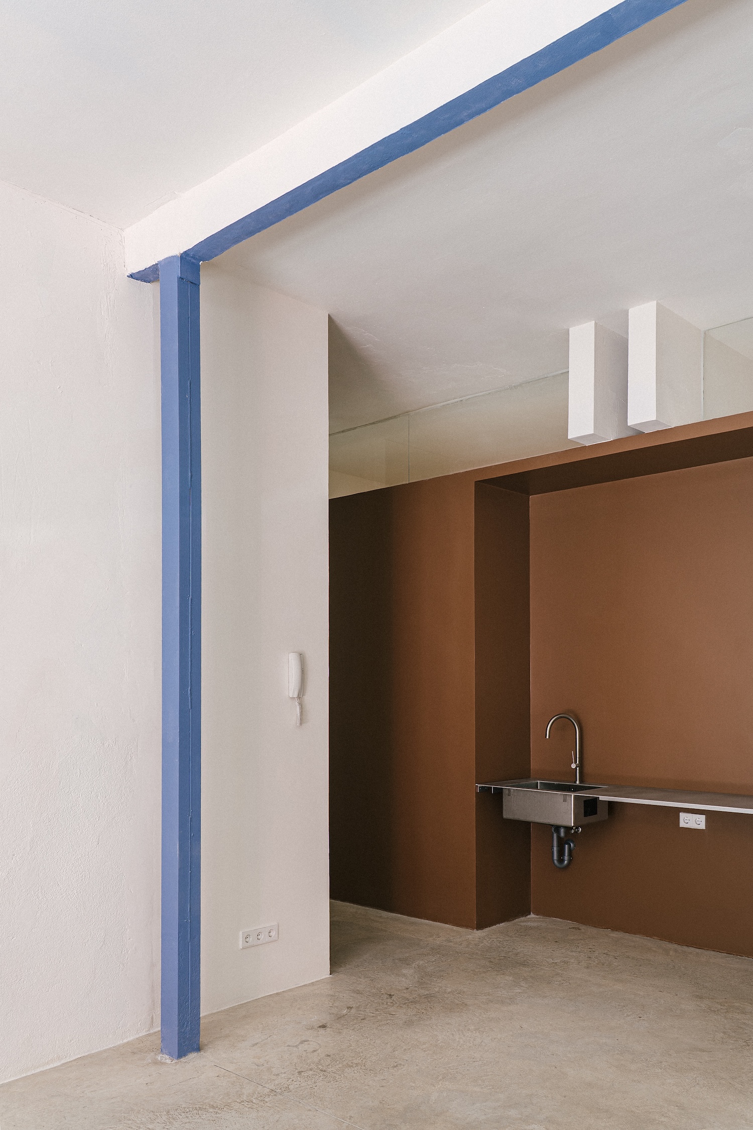 The formal language draws explicitly from the phenomenology of New York lofts in the 1960s and 70s, those raw volumes defined primarily by air and possibility rather than prescribed function. But where those lofts emerged from postindustrial abandonment and bohemian colonization, this Madrid intervention arrives with deliberate intention. The interior unfolds as a series of spatial interruptions – walls, doors, balconies, railings – elements that appear less like permanent architectural gestures and more like temporary markings in an ongoing process of spatial appropriation. This apparent disorder masks a functional logic beneath, creating a domestic landscape that remains perpetually open to reinterpretation.