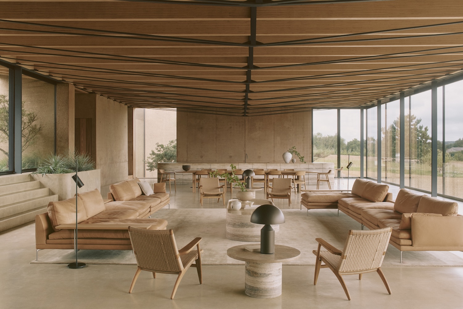 HiAvens is a minimalist country house located in the Cotswolds, United Kingdom, designed by McLaren Excell along with architecture by BPN and landscaping by Rosebank. The project represents an unusual model for contemporary country house development – one where the client operates as creative director rather than passive patron. Stuart Holt, Managing Director of Javelin Block, assembled a collaborative team of specialists to realize a single-story residence in the Cotswolds that reimagines farm building fundamentals in contemporary terms. Holt established a framework where McLaren Excell, BPN, and Rosebank could work toward unified material and spatial ambitions rather than negotiating between competing visions.