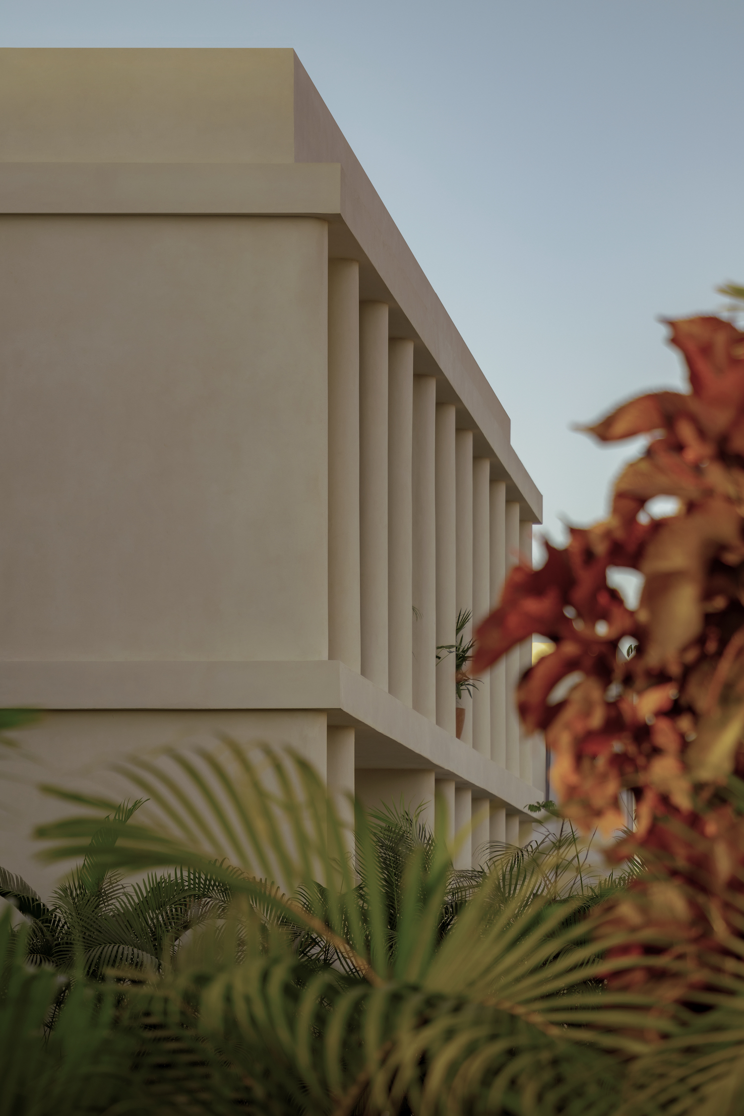 House Los Tigres is a minimalist residence located in Nuevo Vallarta, Mexico, designed by César Béjar Studio in collaboration with Fernando Sánchez Zepeda. To the far left, a subtly placed passageway offers entrance to the home; adjacent, a bench invites one to rest and contemplate. The entrance itself is an inconspicuous door. Within the confines of the home, the initial area is designed for social gatherings. This space deftly manages to shut out the world beyond, focusing instead on an inward-facing vista that opens towards a central patio. It’s here that the residence seeks to curate a private, internally-focused perspective. The home’s four external faces exhibit a gradation in design language, evolving from a restrained, traditional frontage towards the street, to a more explorative, unrestricted approach at the rear of the house. This progression mirrors a transition from stereotomy to tectonics.