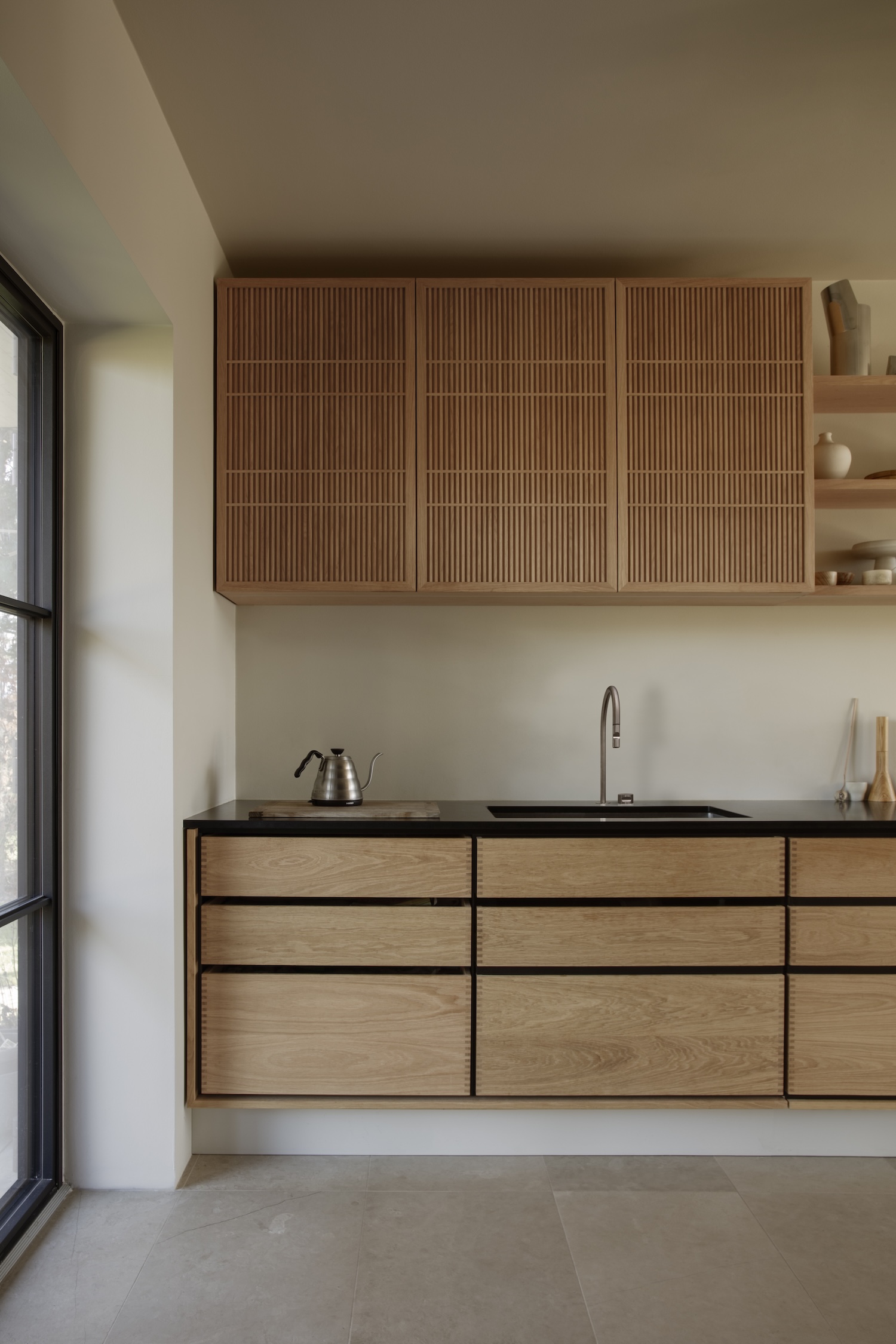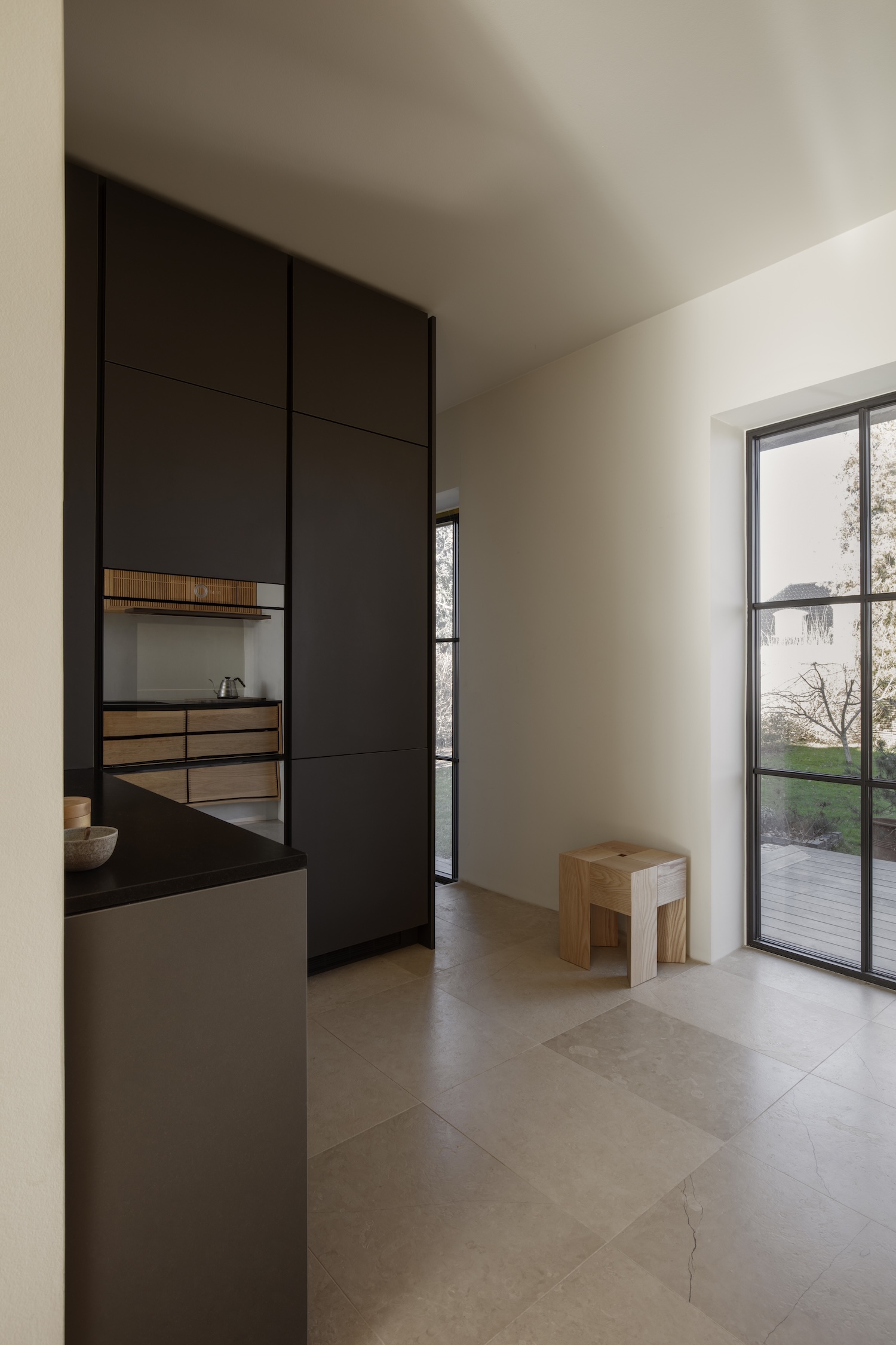 Humlebæk Home is a minimalist residence located in Humlebæk, Denmark, designed by Yasmin Edgecombe of Yoye in collaboration with Garde Hvalsøe. This coastal town project on Copenhagen’s outskirts overlooking the Øresund demonstrates how spatial reorganization and bespoke kitchen design can transform challenging layouts into functional family environments. The location near Louisiana Museum of Modern Art, attracting 70,000 annual visitors, brings sensitivity to aesthetics, materiality, and nature enriching the surrounding area characterized by architecture ranging from grand villas to intimate summer houses.