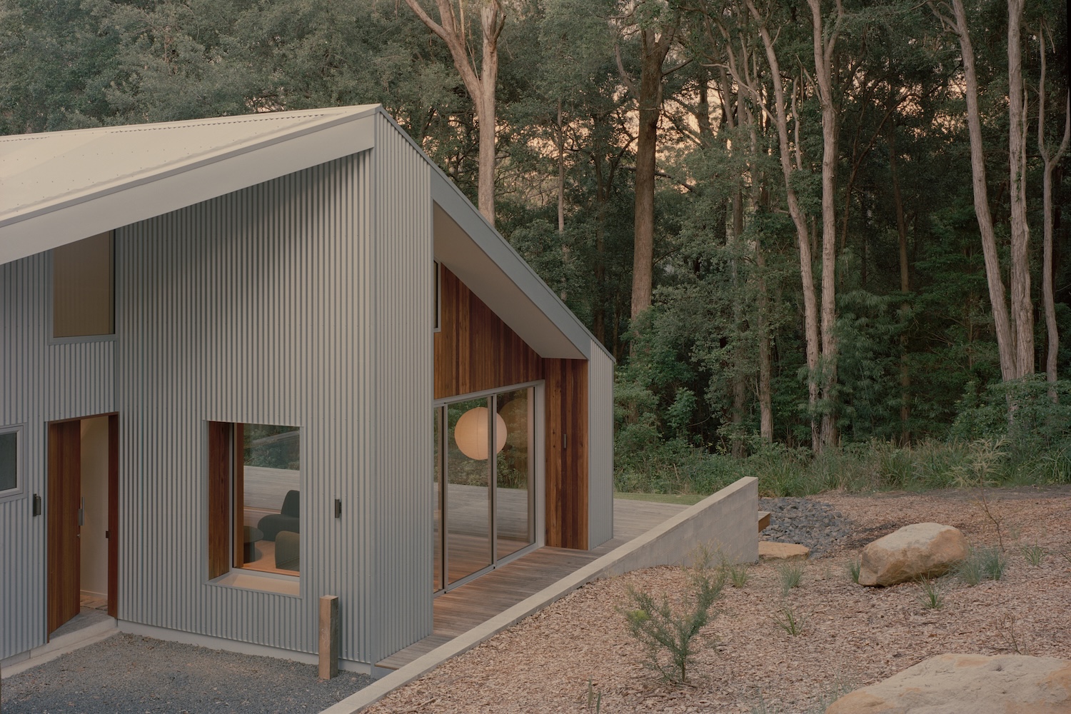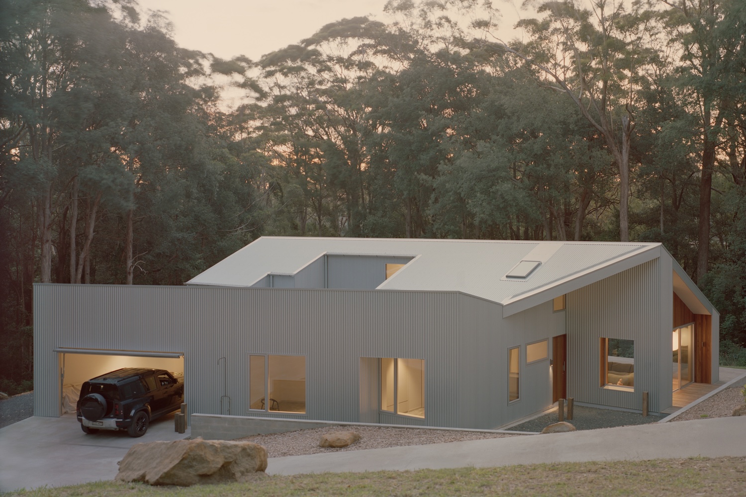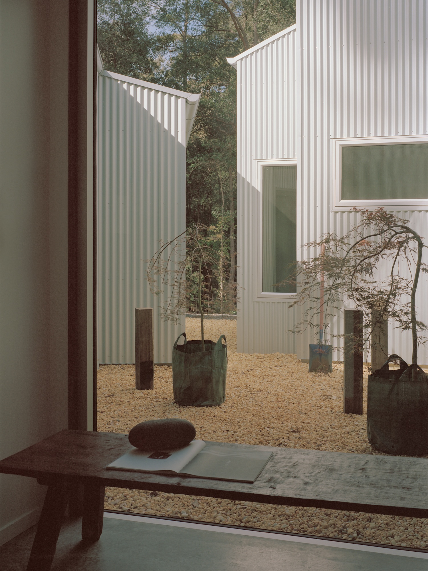 Ironbark House is a minimal home located in Sydney, Australia, designed by Klaus Carson Studio, with styling by Nicholas Kelly. The first light of dawn catches the corrugated Zincalume cladding of Ironbark House, transforming its industrial surface into a shimmering membrane that breathes with the coastal atmosphere. This moment of transformation – utilitarian material becoming poetry – captures the essential philosophy behind Klaus Carson Studio’s latest residential project on New South Wales’ South Coast. Here, in a landscape scarred by fire and shaped by relentless environmental forces, architecture becomes an act of quiet defiance and deep listening.