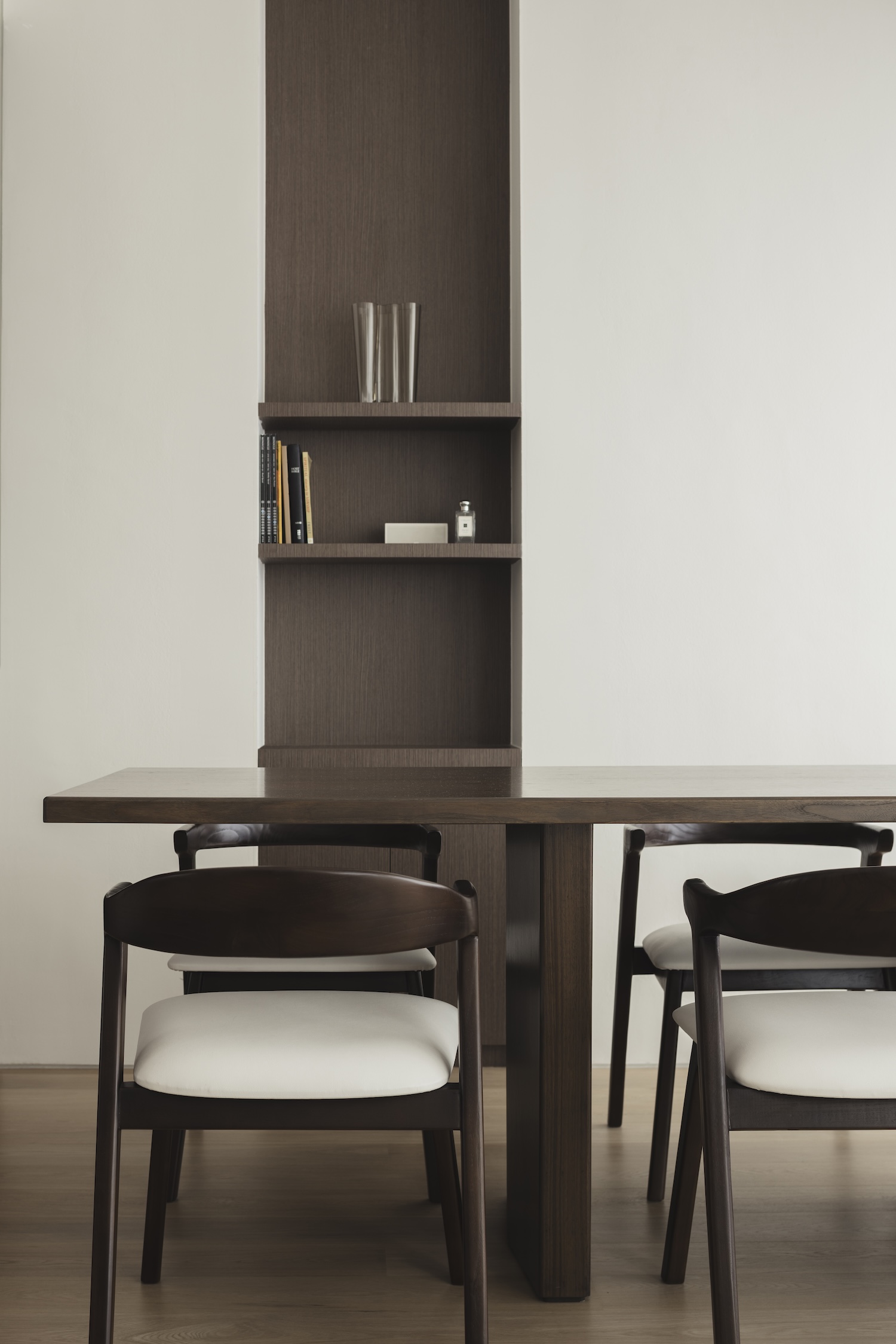 Joo Chiat Apartment is a minimal apartment located in Singapore, designed by WASAA Architects. This 800-square-foot space epitomizes simplicity, functionality, and elegance. The apartment’s open layout is bathed in soft natural light, emphasizing clean lines and uncluttered surfaces. This design approach creates an immediate sense of calm and serenity. The minimalist aesthetic is further enhanced by bespoke furniture, designed by the architect and handmade by local craftsmen. Notable pieces include a solid teak dining table, armchairs, and a minimalist sofa. A stainless-steel kitchen island aligns seamlessly with the overall minimalist theme. Here, the beauty of materials and craftsmanship is on full display.