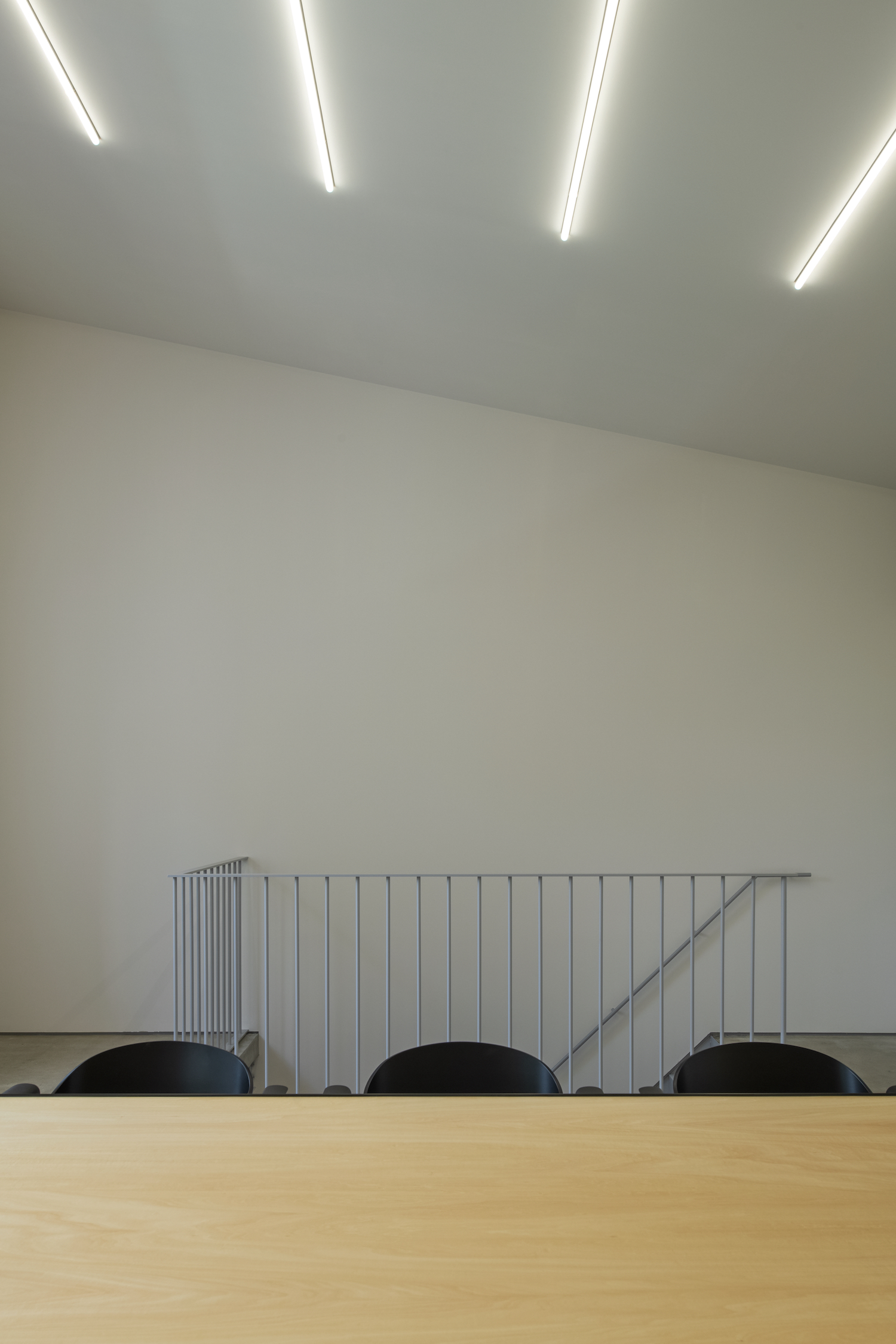 K Atelier is a minimalist space located in Fukuoka, Japan, designed by CASE-REAL. Originally an office space, the building now hosts a main work area on the ground floor and a combined atelier and meeting space upstairs. Key to the transformation was the alteration of the building’s façade. The original aluminum sash glass doors were replaced with a singular, sizable sliding door. This change was not only practical for moving artwork but also aesthetic, harmonizing with the building’s external elements like lighting, mailboxes, and awnings through the use of galvanized steel. Internally, the renovation focused on openness and utility.