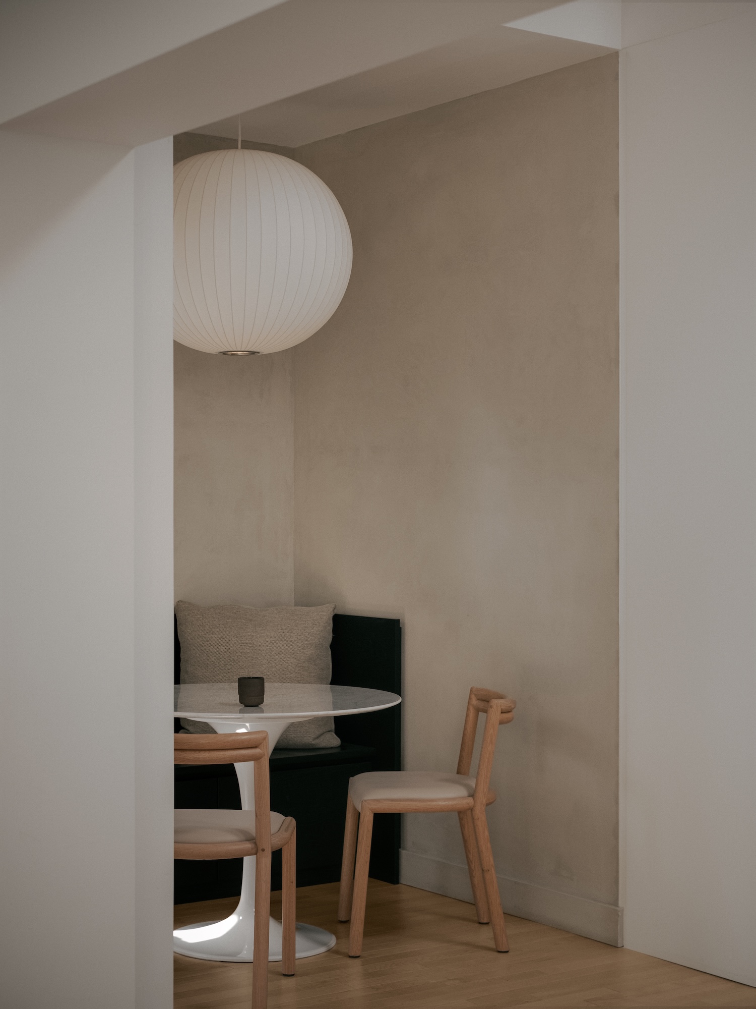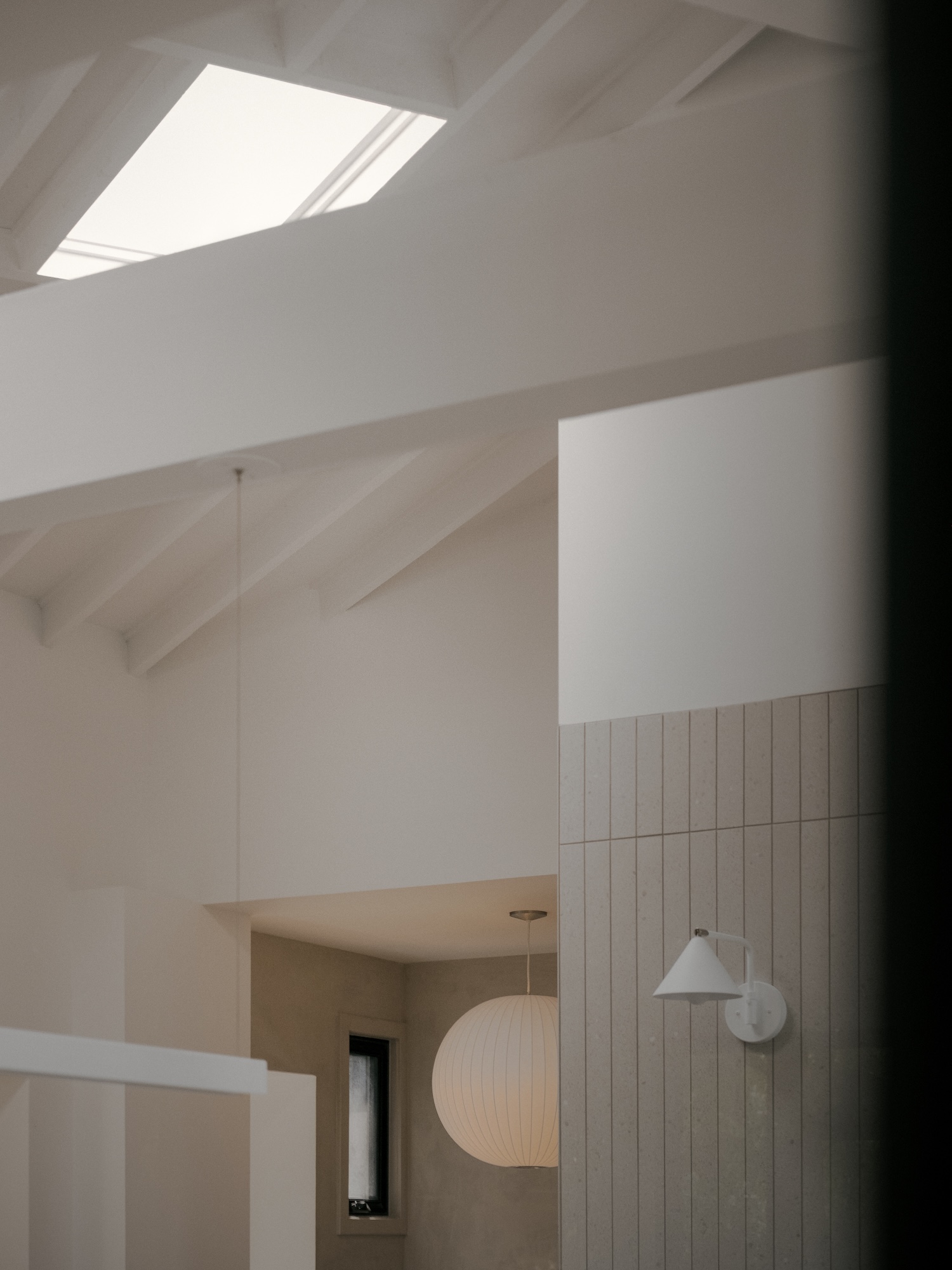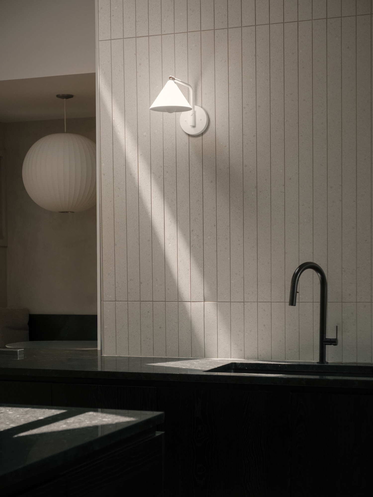 Senior Interior Designer Esther Leduc notes residence already had strong distinctive volume sense with kitchen designed as pivotal space conceived capturing and redistributing light. This strategic positioning demonstrates how single programmatic element can organize spatial relationships throughout dwelling while addressing natural illumination distribution challenges typical of mid-century residential plans where perimeter windows don’t always effectively penetrate deep floor plates requiring supplementary daylighting strategies.