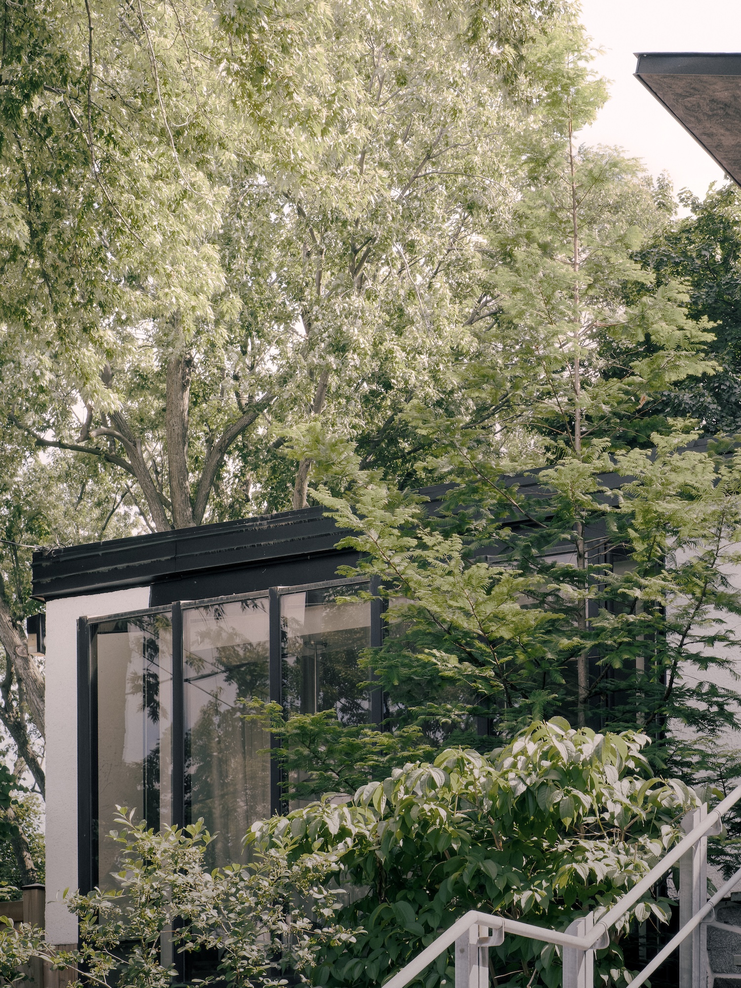 La Verrière is a minimalist home located in Longueuil, Canada, designed by Appareil Architecture. This 1960s residence in mature residential neighborhood demonstrates how kitchen-centered intervention can reimagine family living through glazed volume conception addressing structural constraints. Bound by four structural columns, these limitations became project’s conceptual catalyst extending perspective beyond immediate limits through design engaging quiet dialogue with existing structure revealing preservation strength while grounding whole in calm contemporary sensibility.