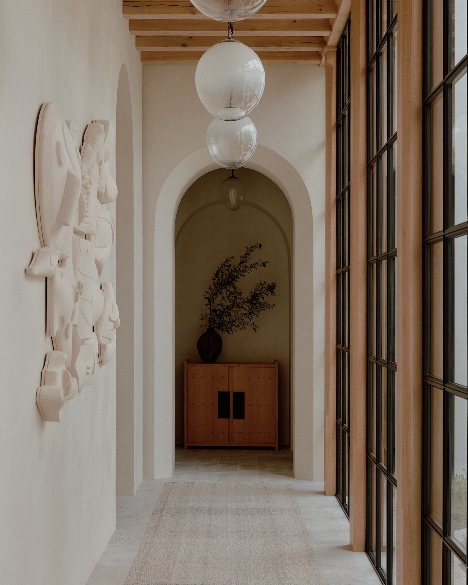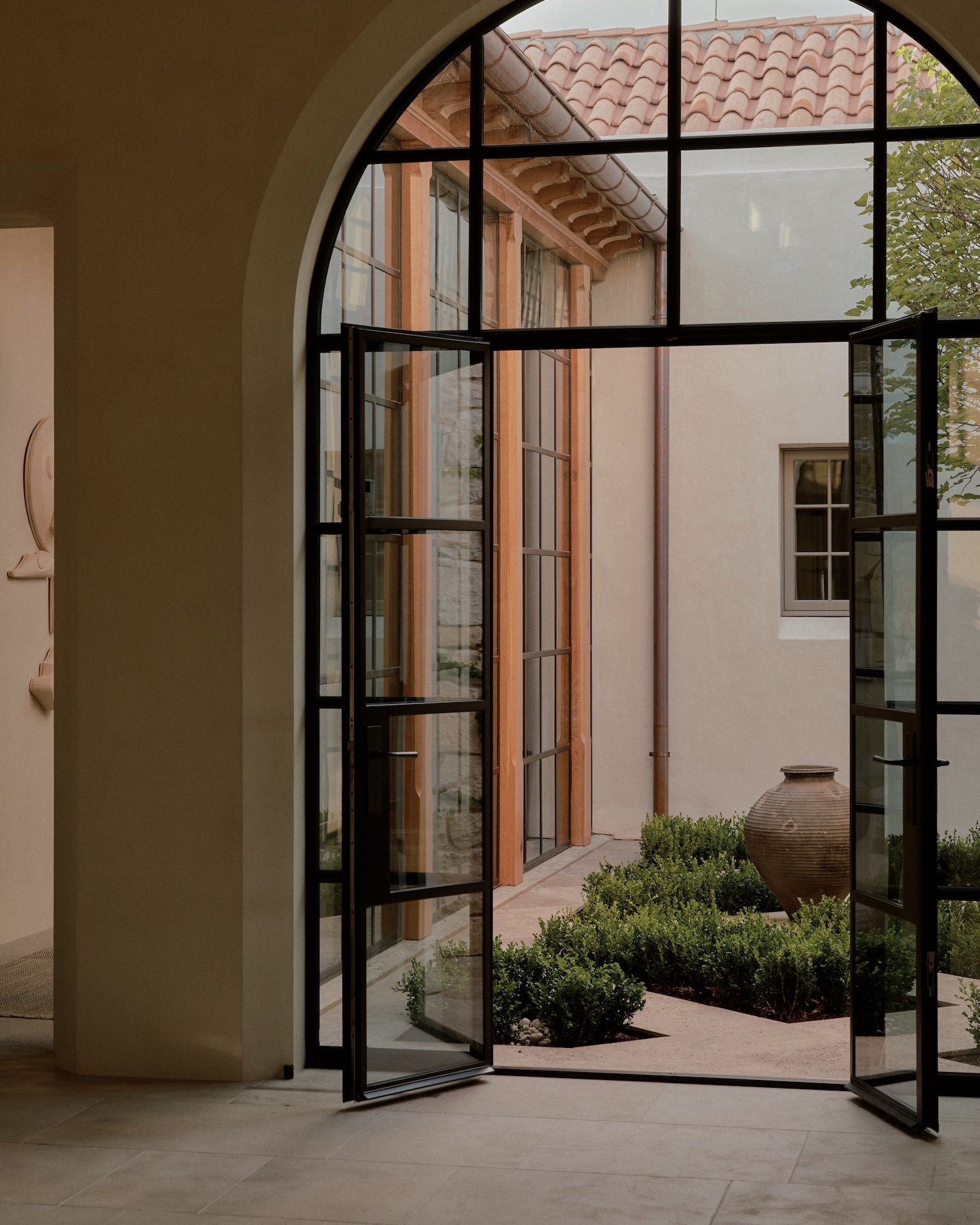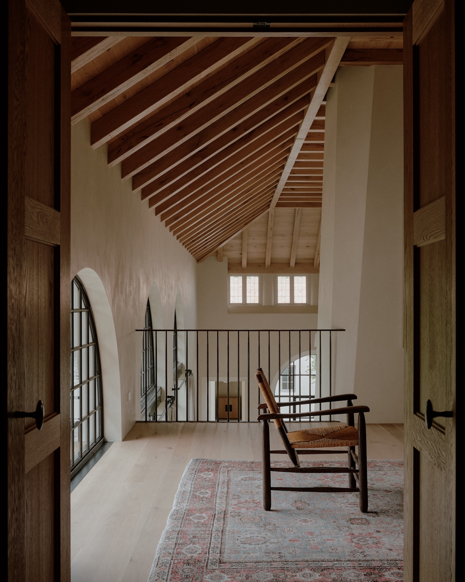 The multi-wing layout surrounds a central courtyard emphasizing indoor-outdoor harmony characteristic of Mediterranean residential typologies while responding to Austin’s climate conditions that support year-round outdoor activity. Terracotta-tiled roofs, light plaster walls, and expansive arched openings establish regional architectural character while custom stained glass details and hand-hewn locally sourced wood carpentry introduce craft specificity that distinguishes the project from generic Mediterranean revival approaches.
