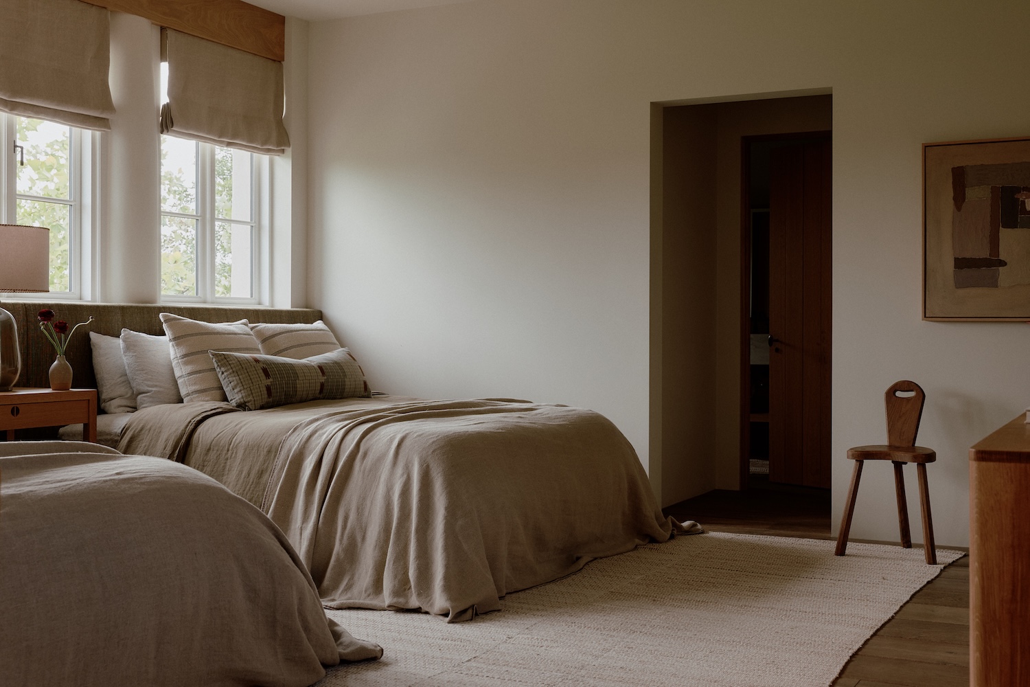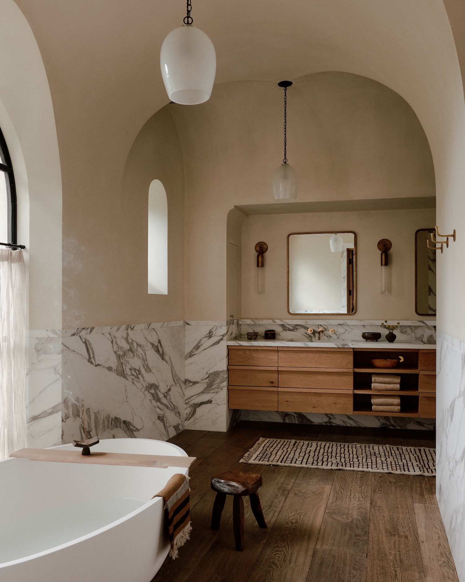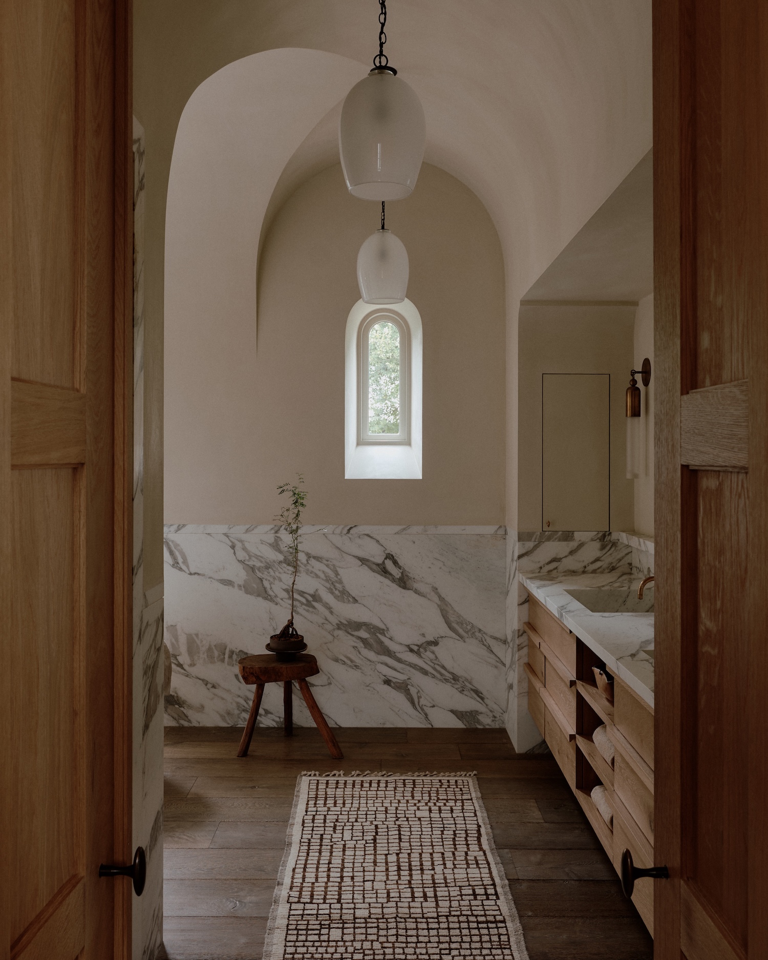 Furniture and lighting curation blends custom and vintage pieces rooted in traditional forms with modern elements that create temporal layering throughout the interiors. Tufted sofas paired with classic slipcovered chairs and vintage French coffee tables demonstrate how varied design periods can coexist when united by consistent spatial sensibility and material palette. This approach reflects contemporary residential design preferences for collected rather than coordinated interiors that suggest gradual accumulation over time.