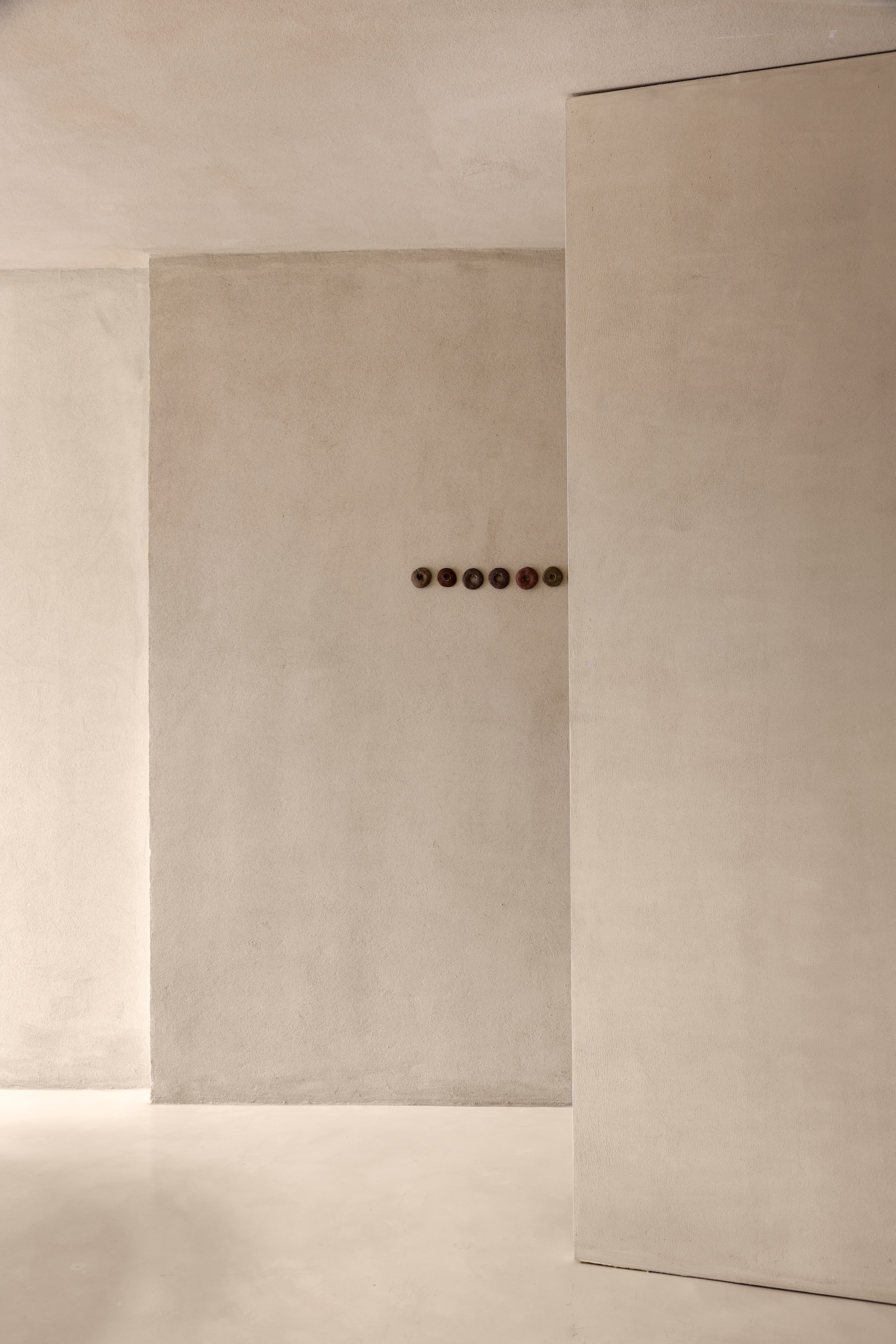 Beneath it all, the pigmented concrete floor anchors the design. Rather than offering a blank slate, the floor presents tonal shifts that reveal the hand of the artisan – not polished into sterility, but left slightly raw, slightly unpredictable. The designers describe this as an architectural humility, a refusal to let materials disappear into the background. “We wanted every surface to speak,” they note, “not shout, but whisper.”