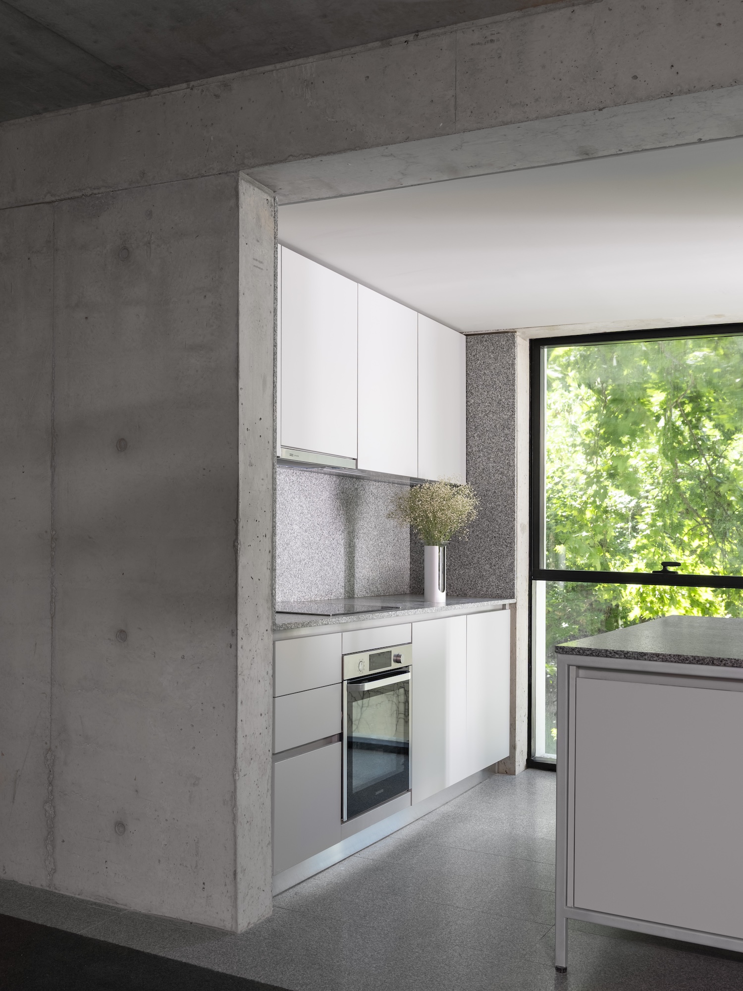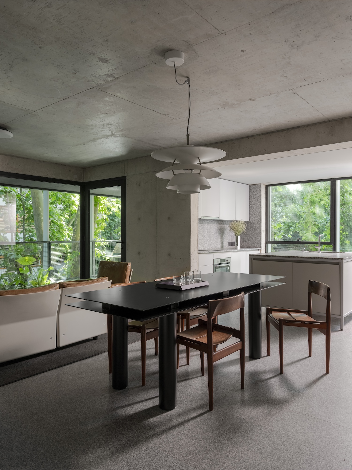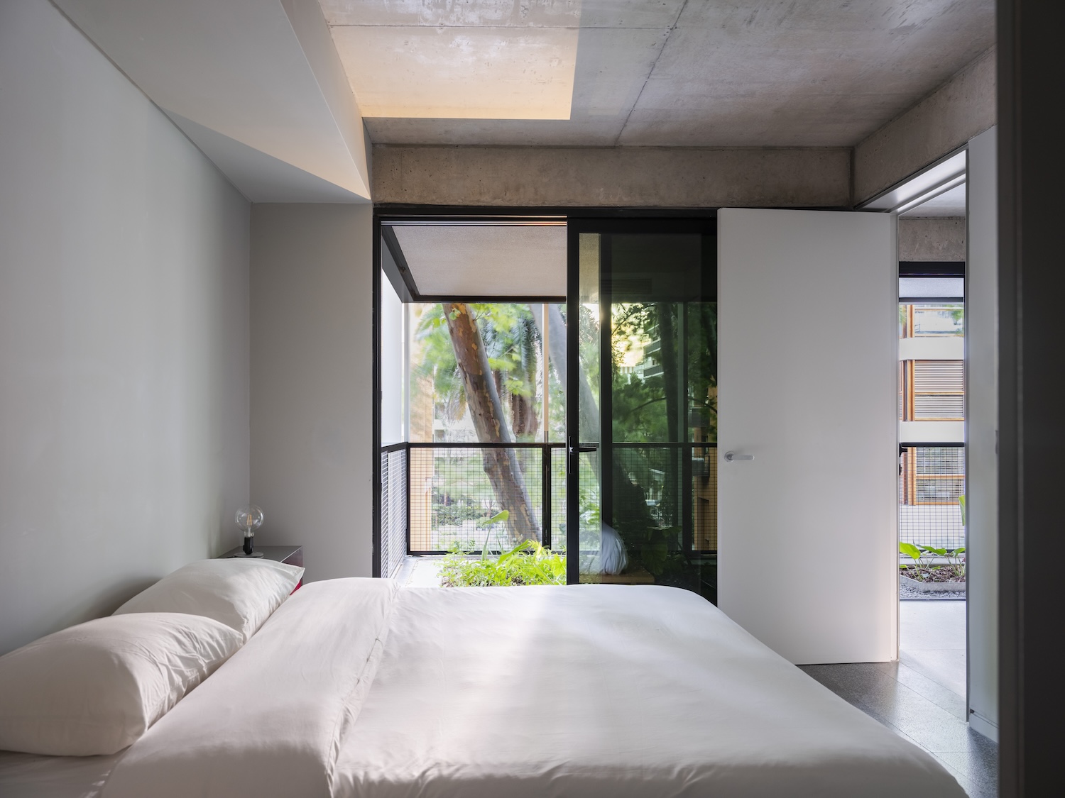 The envelope strategy amplifies this integration through deliberate visual complexity. A light, reflective curtain wall references the neighborhood’s modernist towers, establishing continuity with mid-century precedent. However, abundant vegetation pushes the glass plane inward from its typical position at the building edge. This displacement fundamentally alters perception: what reads initially as a conventional glass tower reveals itself as a more porous structure where planted surfaces occupy the primary vertical plane. The reflective material captures and multiplies the vegetation, creating layered readings that shift with viewing angle and light conditions.