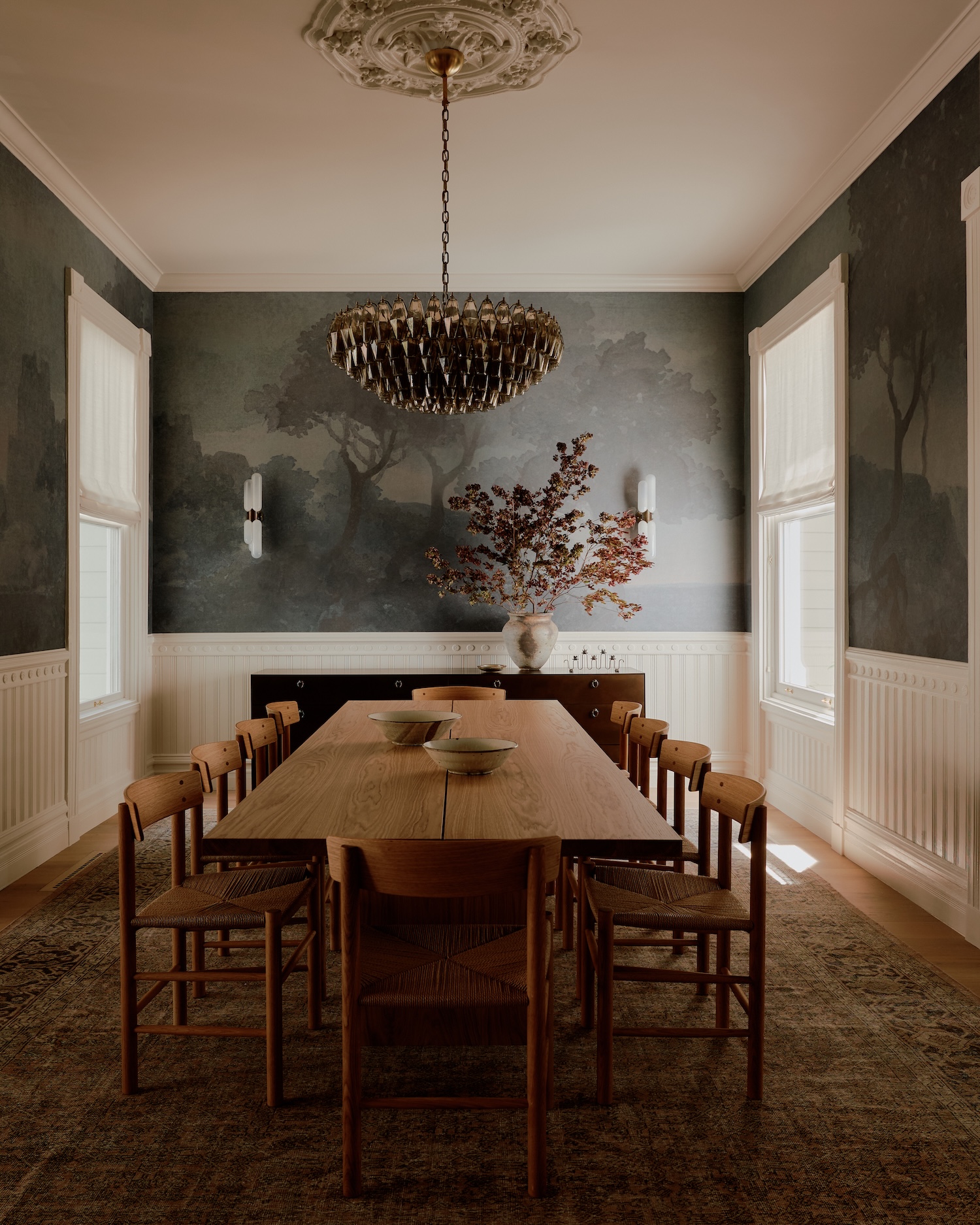 The 11-foot ceilings and period mouldings established clear parameters – any intervention had to acknowledge the vertical drama and decorative framework inherent to the Victorian vocabulary. Rather than stark contemporary insertion, the approach introduces English sensibility through material restraint and tailored proportions. This cross-pollination between American Victorian exuberance and British refinement creates dialogue between ornament and composure, allowing the home to function for contemporary family life while maintaining architectural integrity.