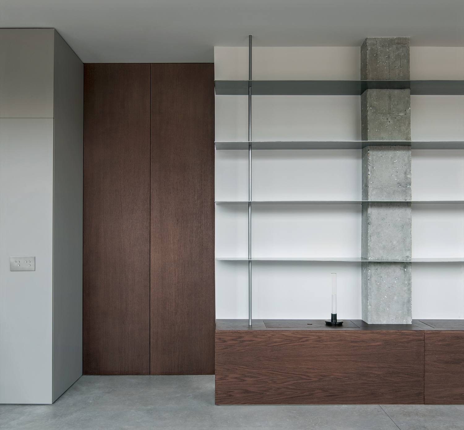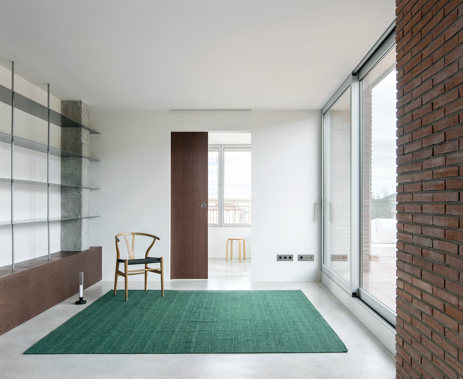 Penthouse A.N.T. is a minimalist residence located in Barcelona, Spain, designed by Pineda & Monedero, in collaboration with Jaime Prous. This 1970s building top-floor dwelling demonstrates how residual penthouse spaces can transform through subtraction process revealing bare structure despite narrow bays and numerous obstacles including drainpipes and ventilation ducts. The project located where recessed facade positions dwelling above lower floor secondary spaces addresses typical urban penthouse challenges where desirable elevation combines with problematic spatial constraints.