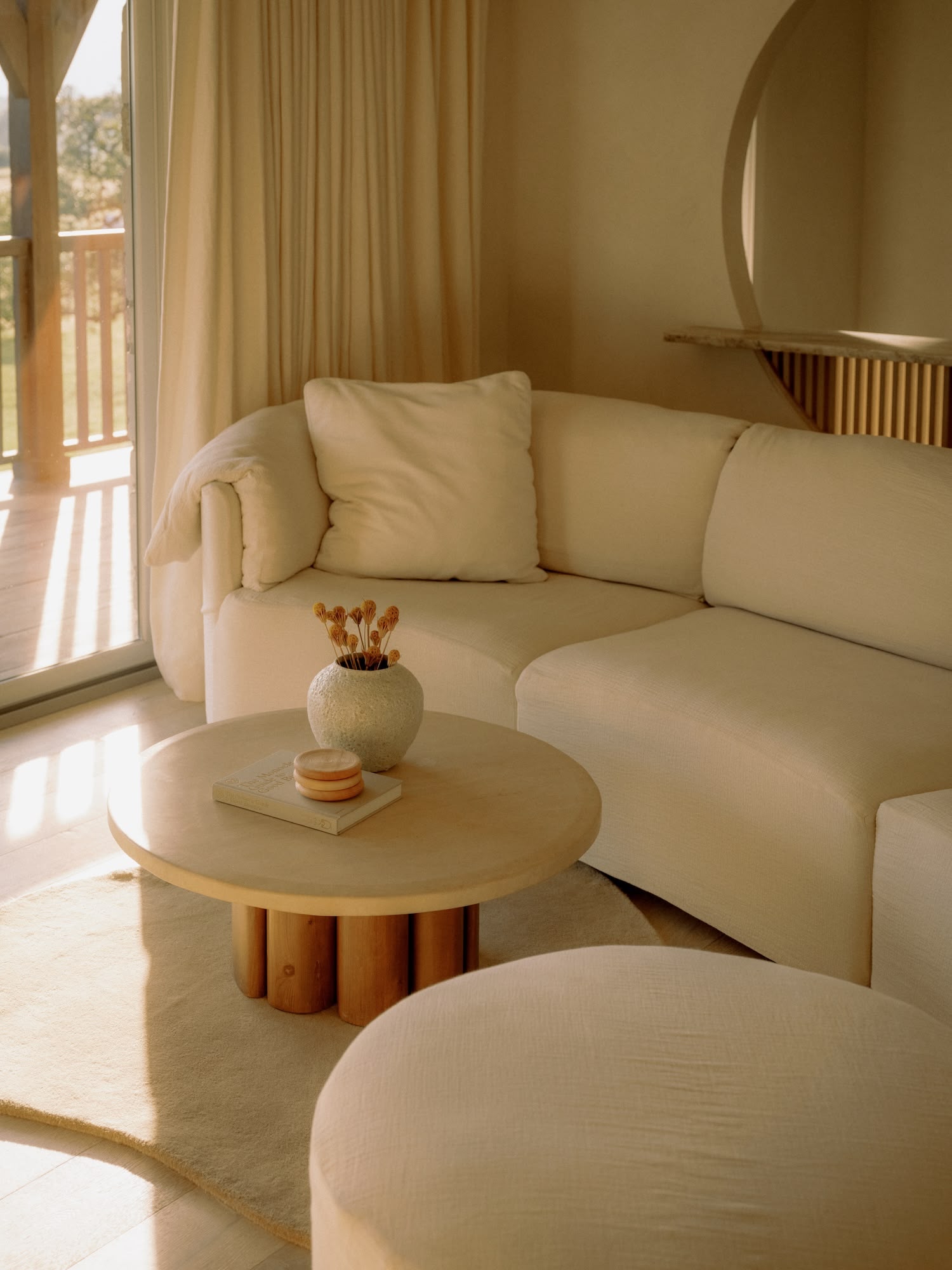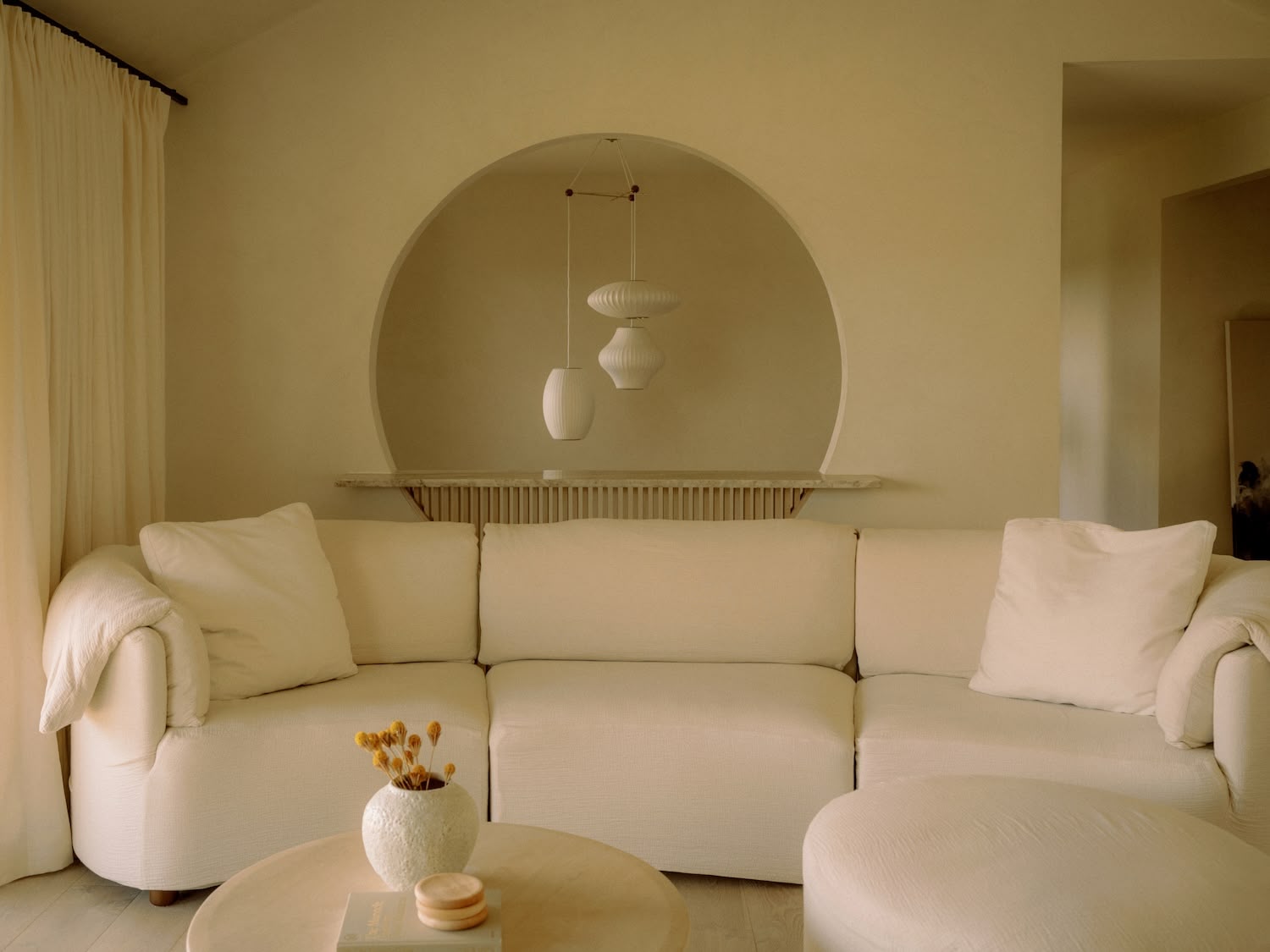 The designers’ handling of transitions deserves particular attention. Throughout the house, hard angles yield to gentle curves, recalling both California’s adobe architectural heritage and contemporary Japanese interior design. The gradated whites and creams of the walls mirror the subtle tonal shifts of the surrounding landscape, while expansive wood-framed windows dissolve the boundary between inside and out – a design move that traces its lineage from traditional Japanese architecture through California modernism to contemporary sustainable design practices.