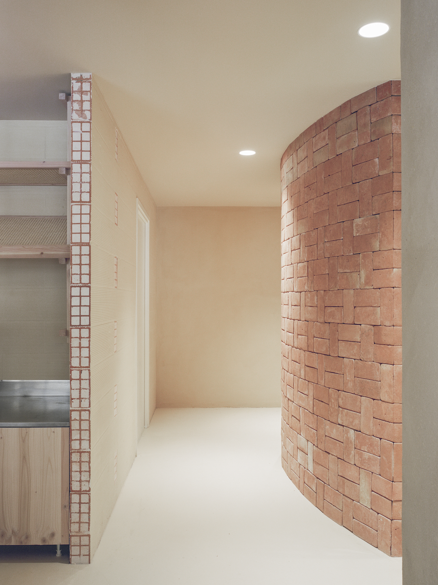 Terra cotta, wood, and bare earth plaster have all been quickly reflected about. Using bio-based materials pushes architects and craftspeople to utilize techniques that have been lost to time and forgotten. The designers move away from conventional and reliable methods due to standardization, rentability, and process velocity. Instead of starting from scratch, the idea is to combine what the studio already knew worked with modern aesthetic standards. Regarding the design of the spaces, reflection has been focused on a starkly straightforward explanation of the many components of the program. An easily accessible public foreground with retail and lunch, and a background showing the many baker’s tools, arranged around a central masterpiece oven, serve as the bakery’s defining visual elements. Beyond a very dedicated team, this project is also a tale of Jean Christophe and Thibault’s unwavering faith in the profession. The deeply enthusiastic father and son never stopped encouraging us to be creative, all the way to the final handmade ceramic piece produced in the studio.