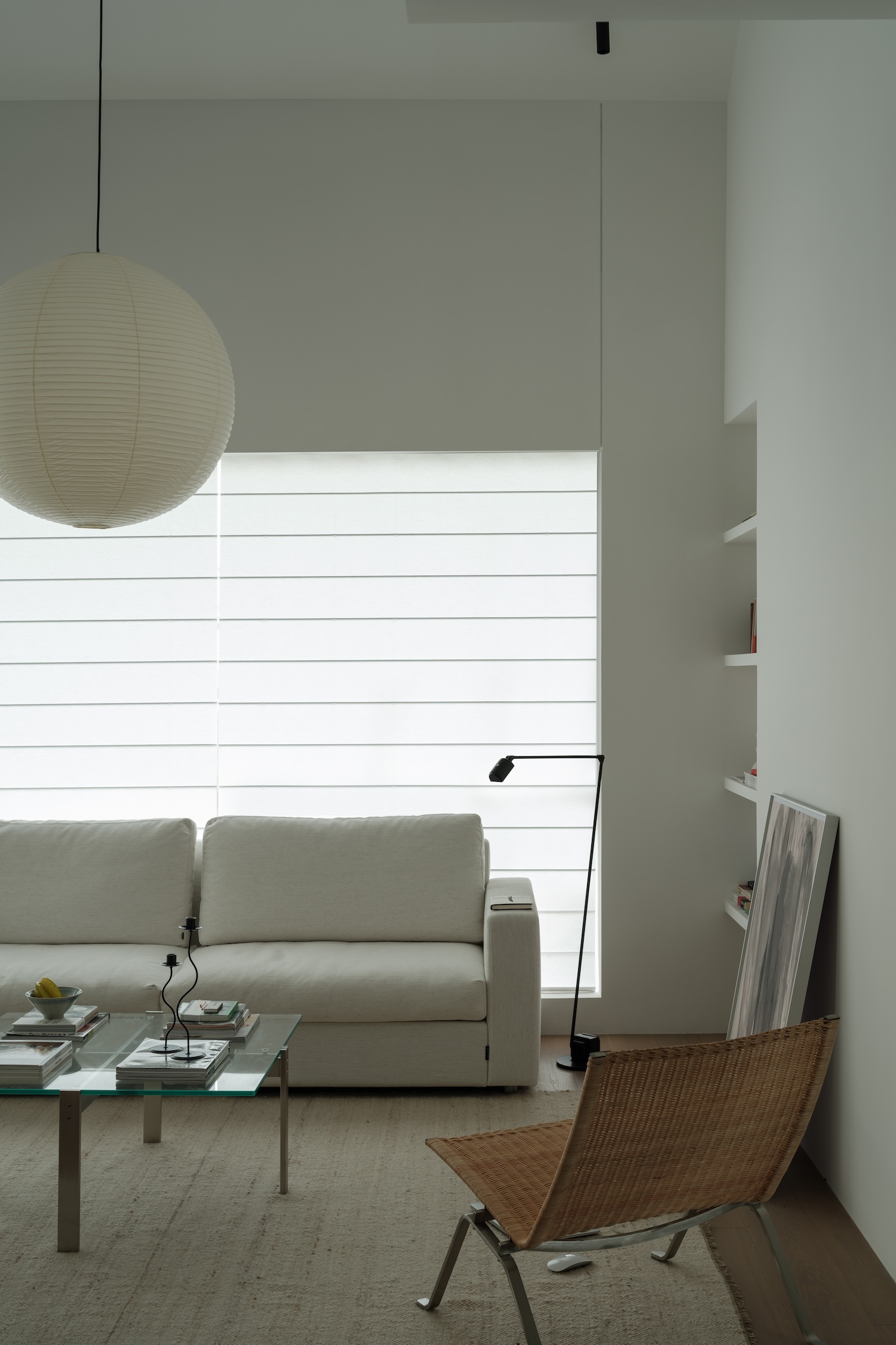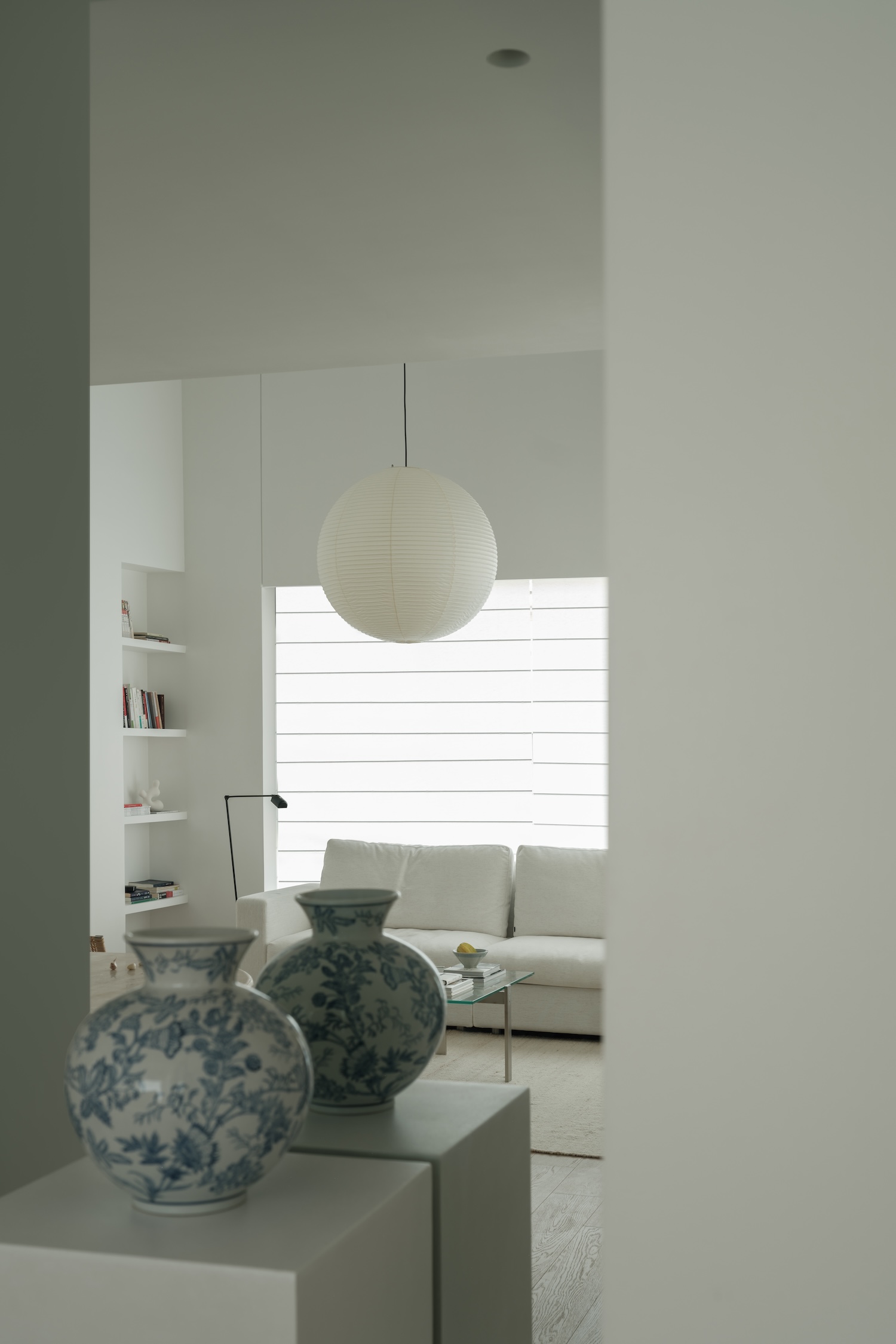 Pure Residence is a minimalist home located in Anhui, China, designed by COCC Design. In this project, a compact duplex located on the top floor has been designed with a minimalist aesthetic that reflects the owner’s personal preferences. The ground floor features an open-plan layout, seamlessly connecting the living room, dining area, kitchen, bar, and a versatile space. This cohesive approach allows for flexible use, catering to both everyday living and social gatherings. Subtle variations in materials and partitioning distinguish the different functional zones without disrupting the visual continuity. The upper level is dedicated to a spacious master bedroom suite, ensuring privacy and tranquility. The design palette is restrained, focusing on neutral tones without the use of vibrant colors or striking patterns. The enduring appeal of white dominates the space, complemented by a careful balance of black and white elements. To enhance the ambiance, furniture and textiles in walnut and linen are incorporated, adding warmth and texture to the otherwise understated interior.