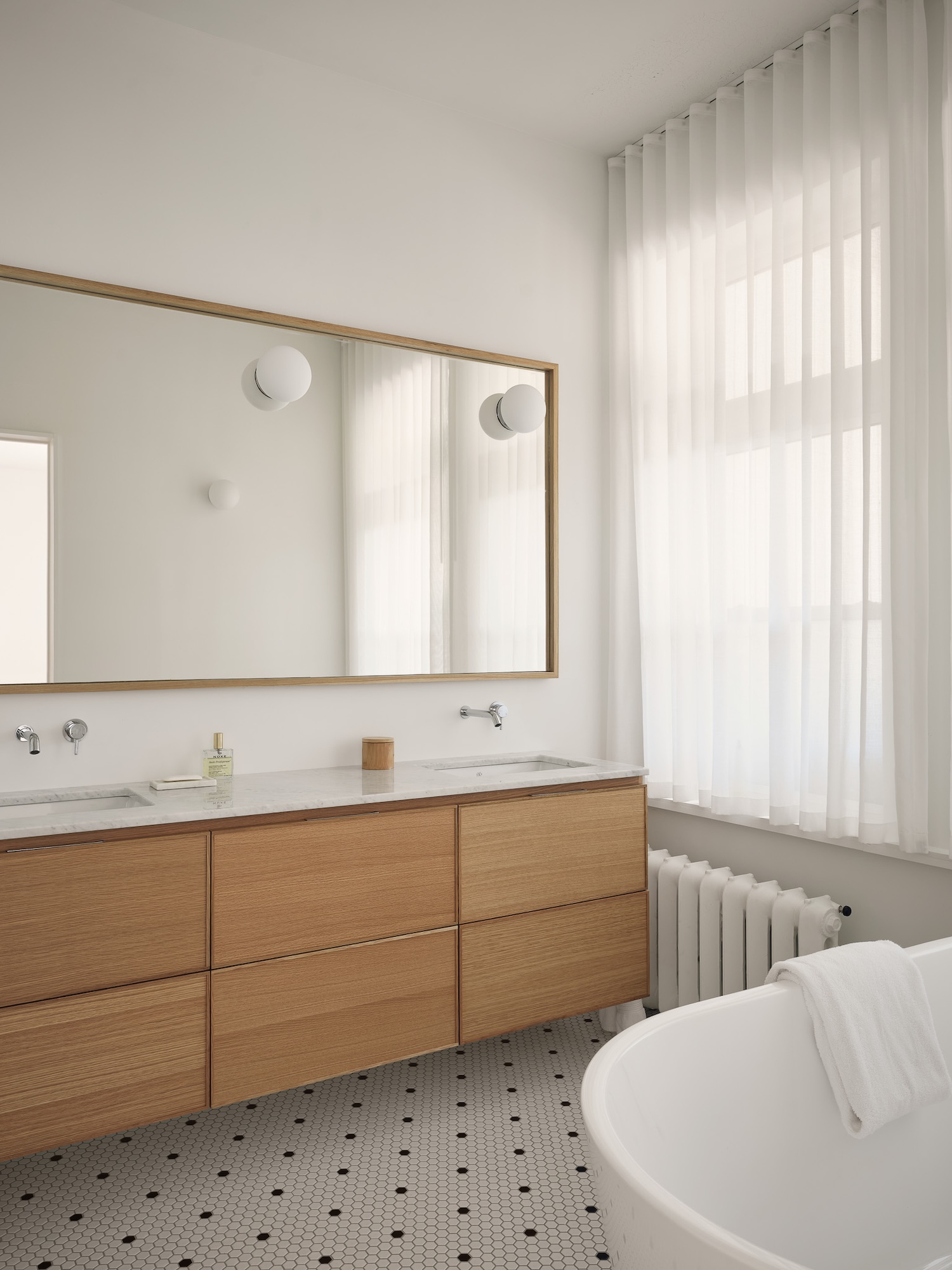 The material story here unfolds through what the design team calls “acupuncture precision” – strategic interventions that honor the early 20th-century woodwork while introducing contemporary elements. Local materials form the bridge between past and present, creating a dialogue rather than a confrontation between eras. The original wood details, carefully preserved and highlighted, speak to Quebec’s rich tradition of craftsmanship, while the new insertions demonstrate how sensitive renovation can enhance rather than erase architectural memory.