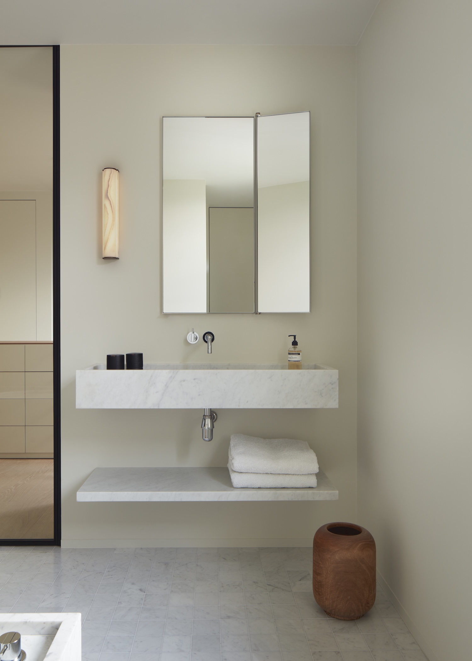 The materiality of the space speaks to the Belgian tradition of domestic refinement without falling into regional clichés. Vercruysse’s choices reveal a sophisticated understanding of how materials can serve as both practical solutions and emotional conduits. The surfaces throughout the ground floor create a continuity that guides inhabitants through their daily rituals while subtly acknowledging the coastal context that surrounds the home.