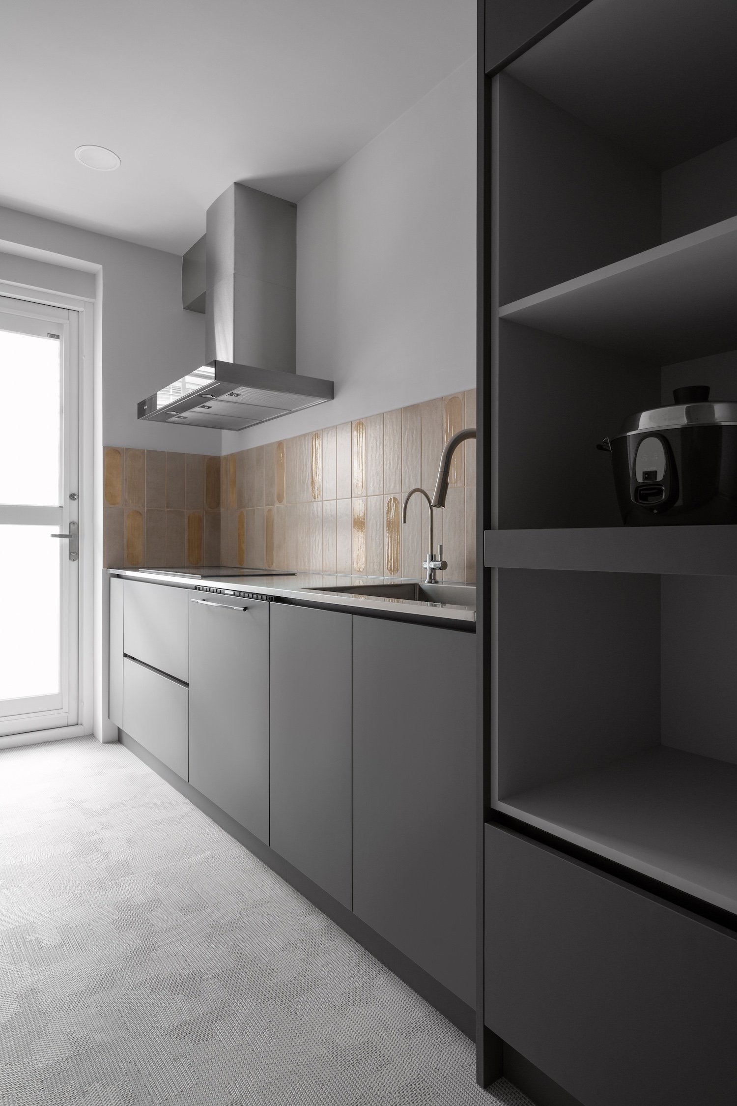 Residence Y2 is a minimal home located in Taipei, Taiwan, designed by CM Design. The house, characterized by its long layout, front and back lighting, and a rear kitchen, had always felt dark and narrow in their memories. To create a brighter, more open space, the design team opted for a complete overhaul, introducing new materials and an experimental approach to transform the townhouse into a modern, functional living space. The original layout of the home restricted light and space, particularly in the rear kitchen and dining area. To address this, the design divided the rear section into three distinct areas: two bathrooms and a downsized kitchen.