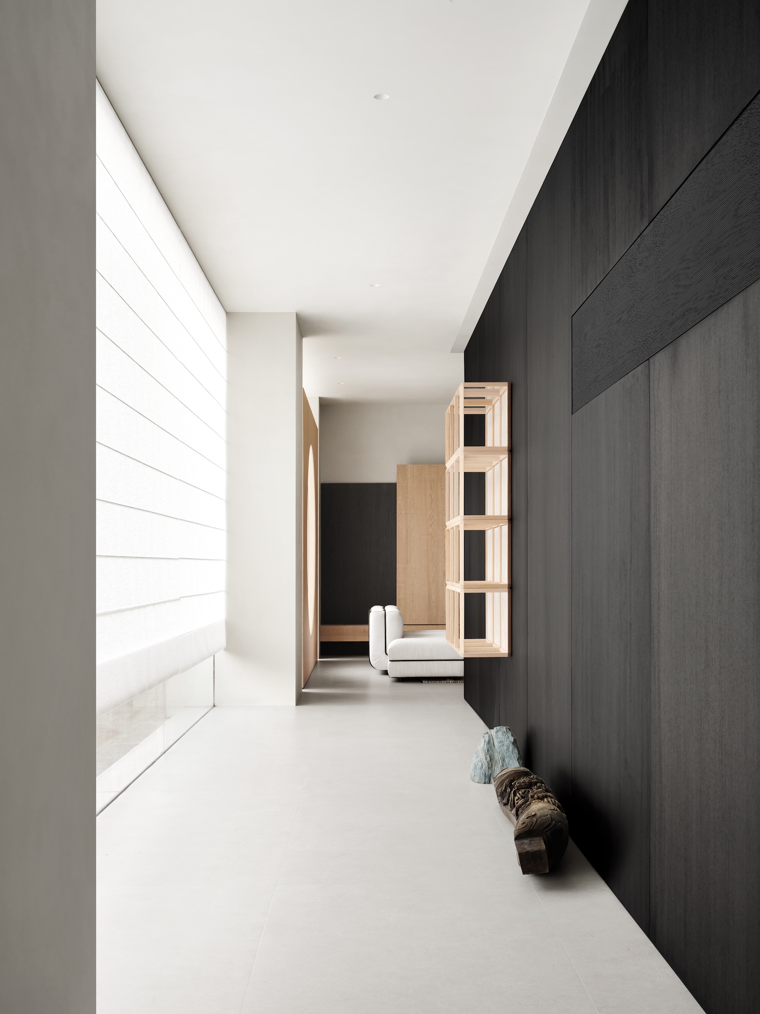 Sanchi Woodwork is a minimalist space located in Wenzhou, China, designed by NDB DESIGN OFFICE. The project emerges from a critical examination of contemporary showroom typology, where commercial spaces increasingly collapse into fleeting aesthetic gestures rather than lasting frameworks for material encounter. NDB Design proposes instead a systematic restructuring of spatial relationships, one that prioritizes durability over trend cycles and privileges unmediated engagement with craft over constructed lifestyle narratives. The intervention reads less as stylistic positioning and more as infrastructural thinking applied to commercial display, creating conditions for sustained attention rather than orchestrated persuasion.