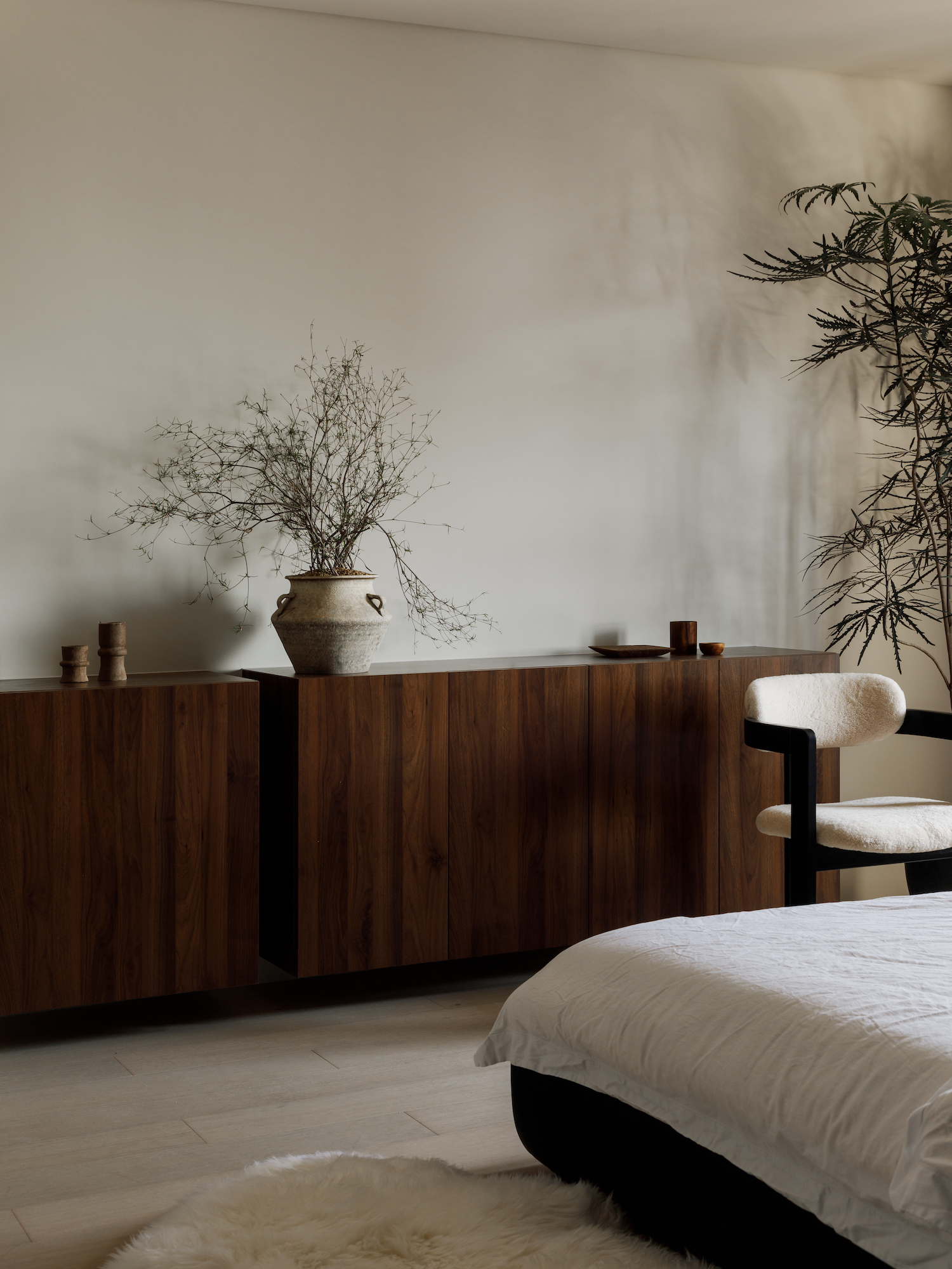 Sands City Residence is a minimal home located in Chengdu, China, designed by ANG 3 STUDIO. This ambitious project metamorphosed a 180-square-meter dwelling from a generic “model room” into a minimalist sanctuary, where black and white hues reign supreme, crafting an ambiance of refined elegance. The original blueprint, ill-suited to the homeowner’s vision, necessitated a comprehensive reimagining. The result is a masterful blend of form and function, where aesthetic sophistication harmonizes with practical needs. At the core of this domestic transformation lie two sinuous black sofas, anchoring the living room and serving as the gravitational center of the home. These curvaceous pieces sculpt an intimate enclave, positioning the living area as both a haven for repose and the social nucleus of the residence.