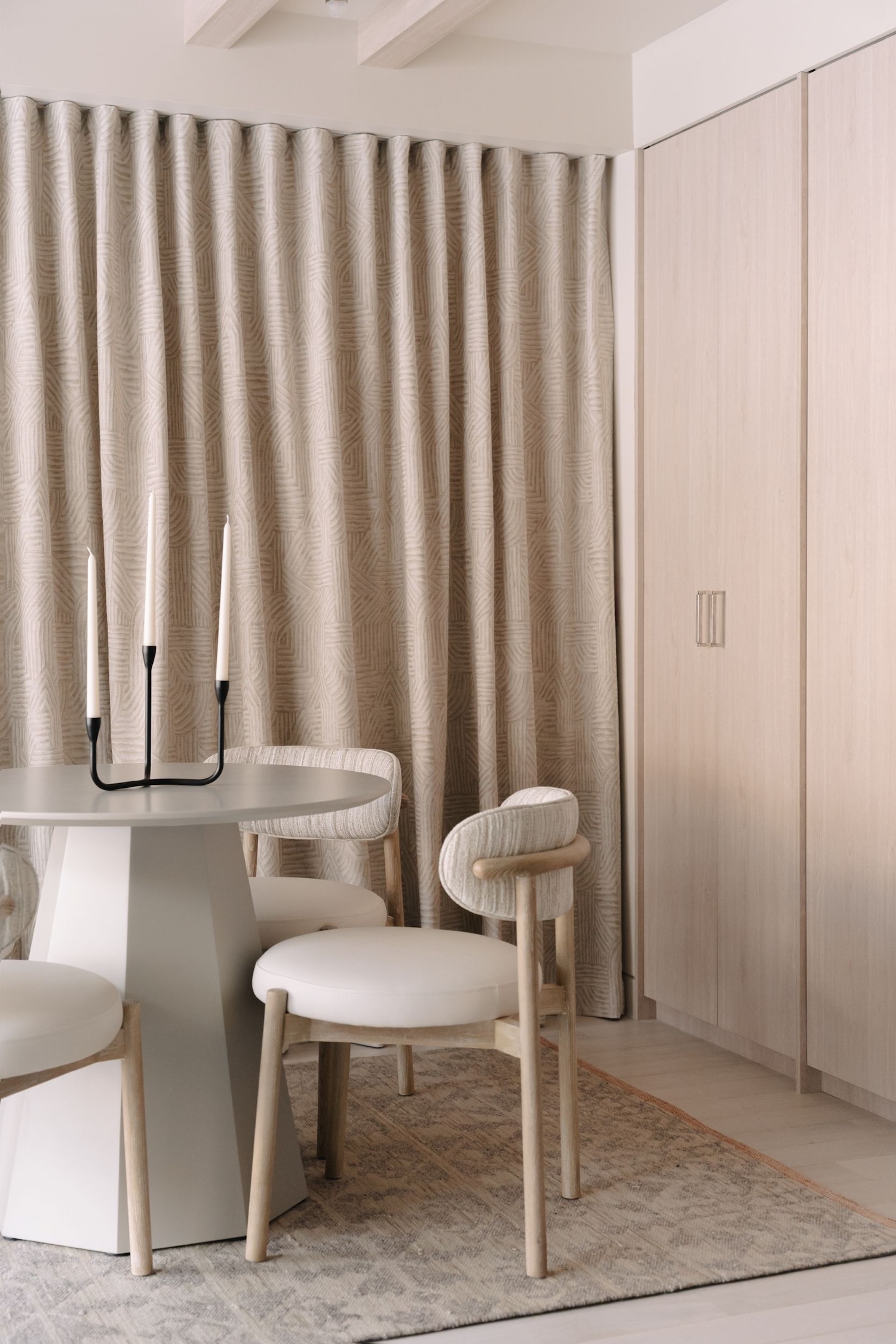 The hardware layer reveals where craft tradition intersects contemporary making. Recycled bronze pulls and handles – their surfaces bearing the irregular patina of reclaimed material – punctuate joinery planes with sculptural detail. This approach to hardware as small-scale sculpture rather than utilitarian necessity connects to a broader Australian design sensibility visible in studios like Apparatus or Dowel Jones, where functional objects carry artistic intention. Local ceramicist contributions in lighting fixtures extend this philosophy vertically, their handmade irregularity softening architectural precision without compromising it.