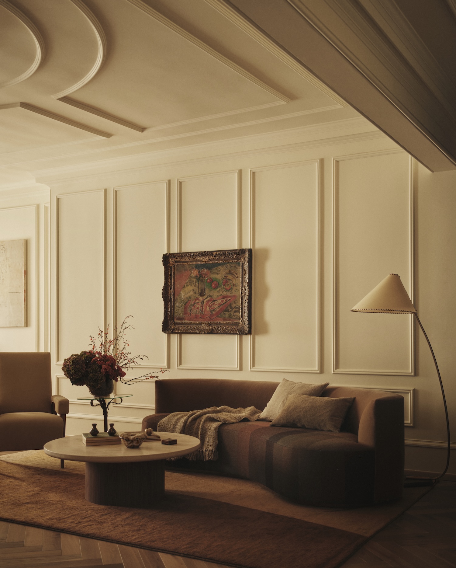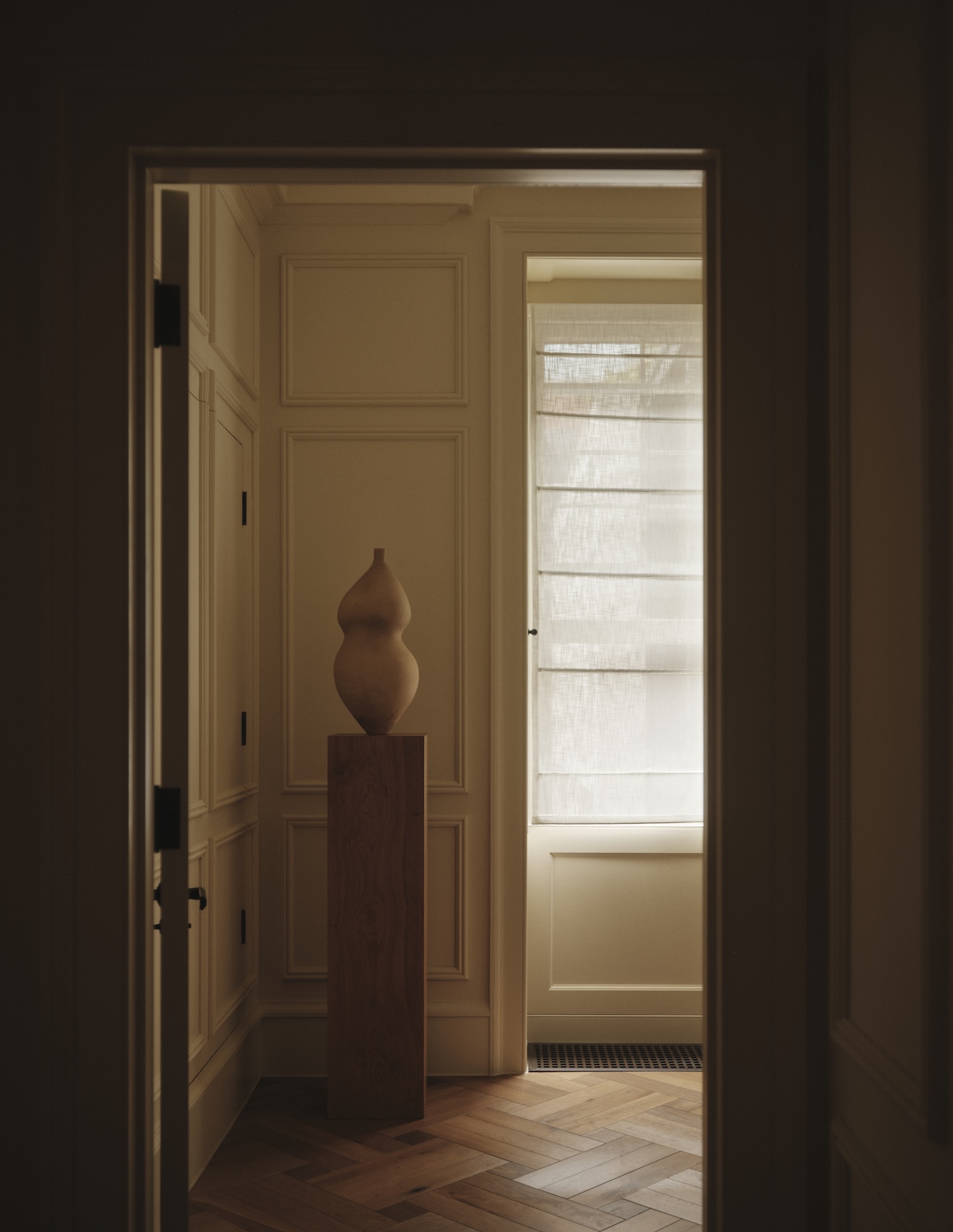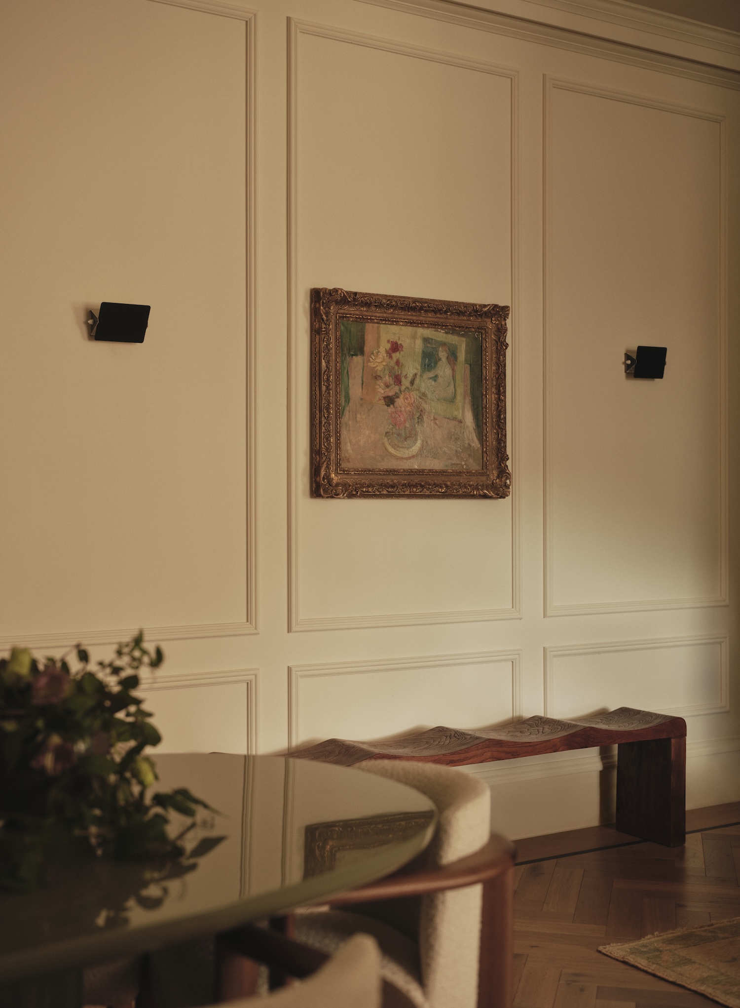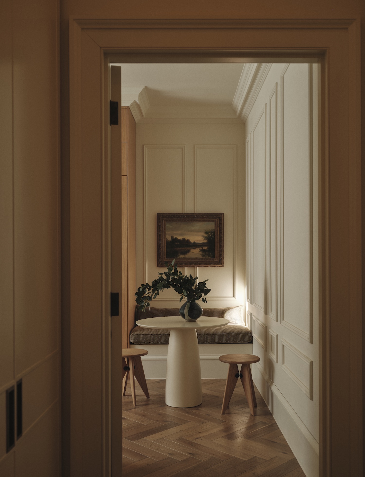 St James is a minimalist interior located in London, United Kingdom, designed by Two Muse Studios with styling by Olivia Gregory and florist Juliet Glaves. The project occupies an entire floor of a Georgian townhouse built between 1748 and 1751, a building with protected Grade II status that architect Matthew Brettingham the Elder designed for William Wentworth, the 2nd Earl of Strafford. Los Angeles-based designers Alexa Lameiras and Katelyn Pascavis approached this workspace not as corporate territory but as inhabited space, allowing the building’s 275-year history to inform a vocabulary that privileges domesticity over institutional decorum.