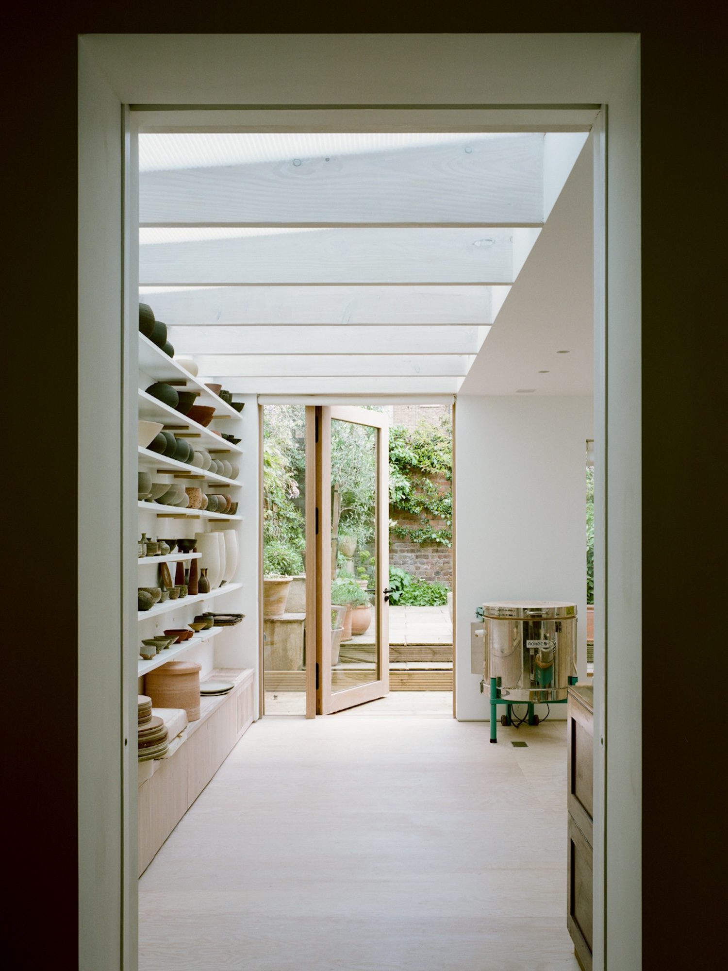 Studio for a Potter is a minimalist space located in London, United Kingdom, designed by Clementine Blakemore Architects. The renovation of a historic house, originally built in 1845, has provided a new studio space for potter Tanya McCallin. This project focused on opening up and partially rebuilding the rear extension, resulting in a spacious and light-filled studio that connects directly to the garden. Enhancing the building’s thermal efficiency was made possible through funding from the Camden Climate Fund. The thoughtful renovation preserves the historical essence of the property while adapting it for contemporary use.
