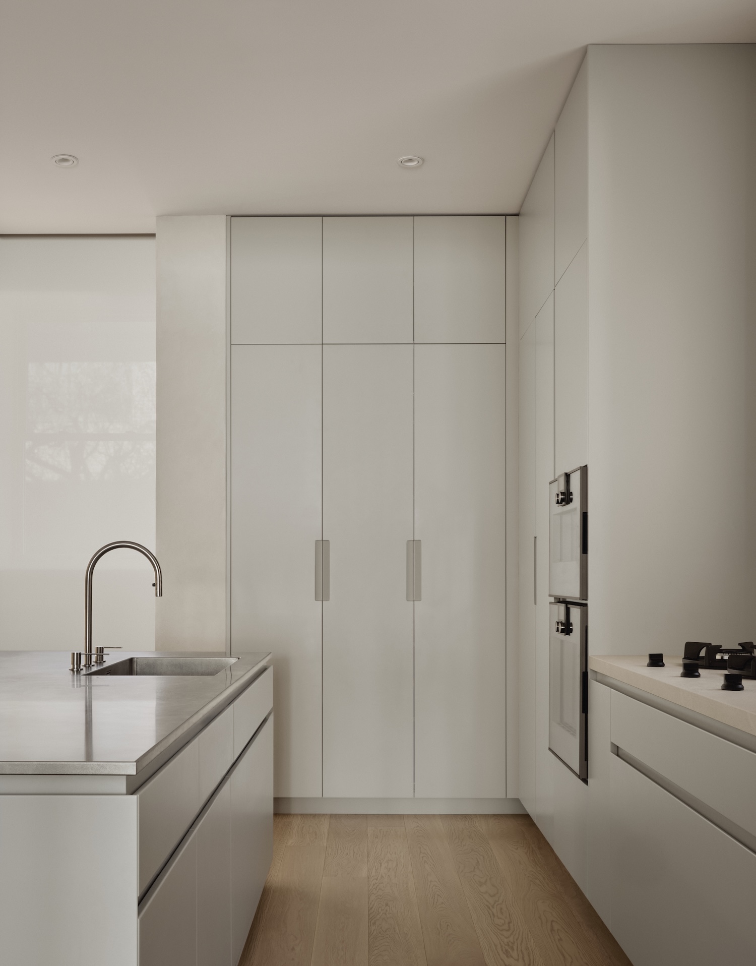 Victoria is a minimal home located in Montreal, Canada, designed by mitchell sweibel studio. A Victorian-era banister, its wooden curves worn smooth by generations of passing hands, stands as both sentinel and bridge in this Montreal home – connecting not just floors, but epochs. This preserved architectural element serves as our entry point into understanding how Henri Cleinge Architect’s renovation navigates the delicate balance between heritage and contemporary living in Westmount’s historic fabric. The project’s approach to preservation is remarkably nuanced. Rather than pursuing a purely preservationist stance or complete modernization, the architects chose a third path: using the original staircase as an architectural fulcrum around which to pivot between past and present.
