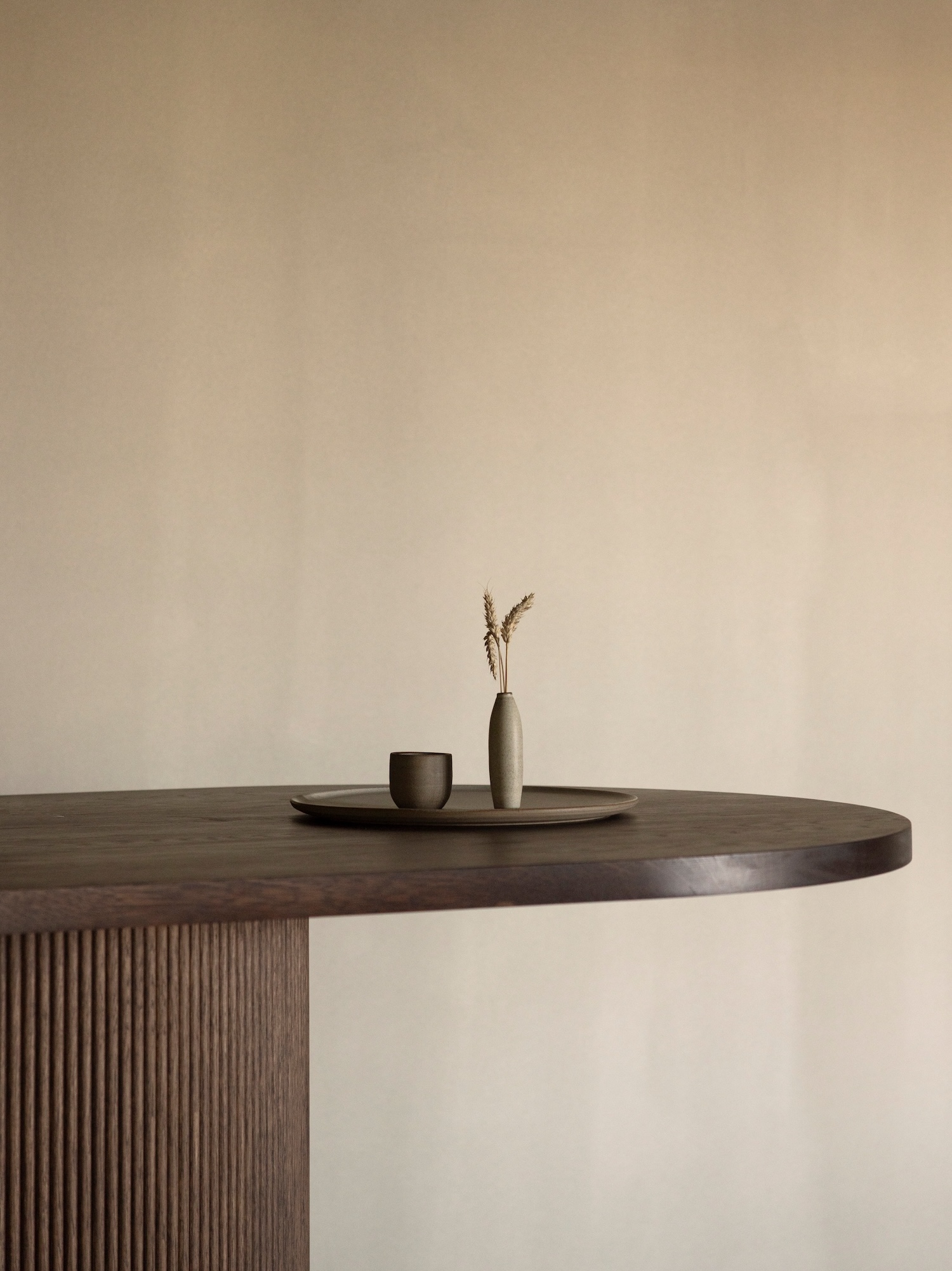 The spatial choreography unfolds vertically through a grand staircase in dark oiled oak, leading to upper levels where the material palette lightens perceptibly. This shift from dark to light, heavy to airy, mirrors the experiential progression from arrival to immersion. A colonnade defines the yoga and relaxation spaces, its repetitive structure creating a meditative rhythm, while outdoor terraces extend seamlessly into the hillside, guiding visitors upward toward the rooftop panorama. Throughout, views are framed with painterly precision – not as decorative apertures but as calibrated moments of visual connection to the vineyard, the lake, and Restaurant ÄNG beyond.