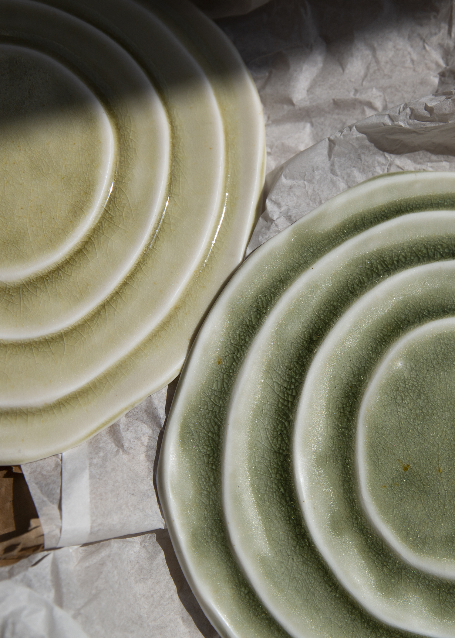 Characterized by its earthy material palette ranging from creamy off-whites to sage greens, the Mark Lamp is available in glazes made from wood ash — a natural glaze that utilizes minerals from ash trees, resulting in an array of colors depending on the nutrients the tree has absorbed.