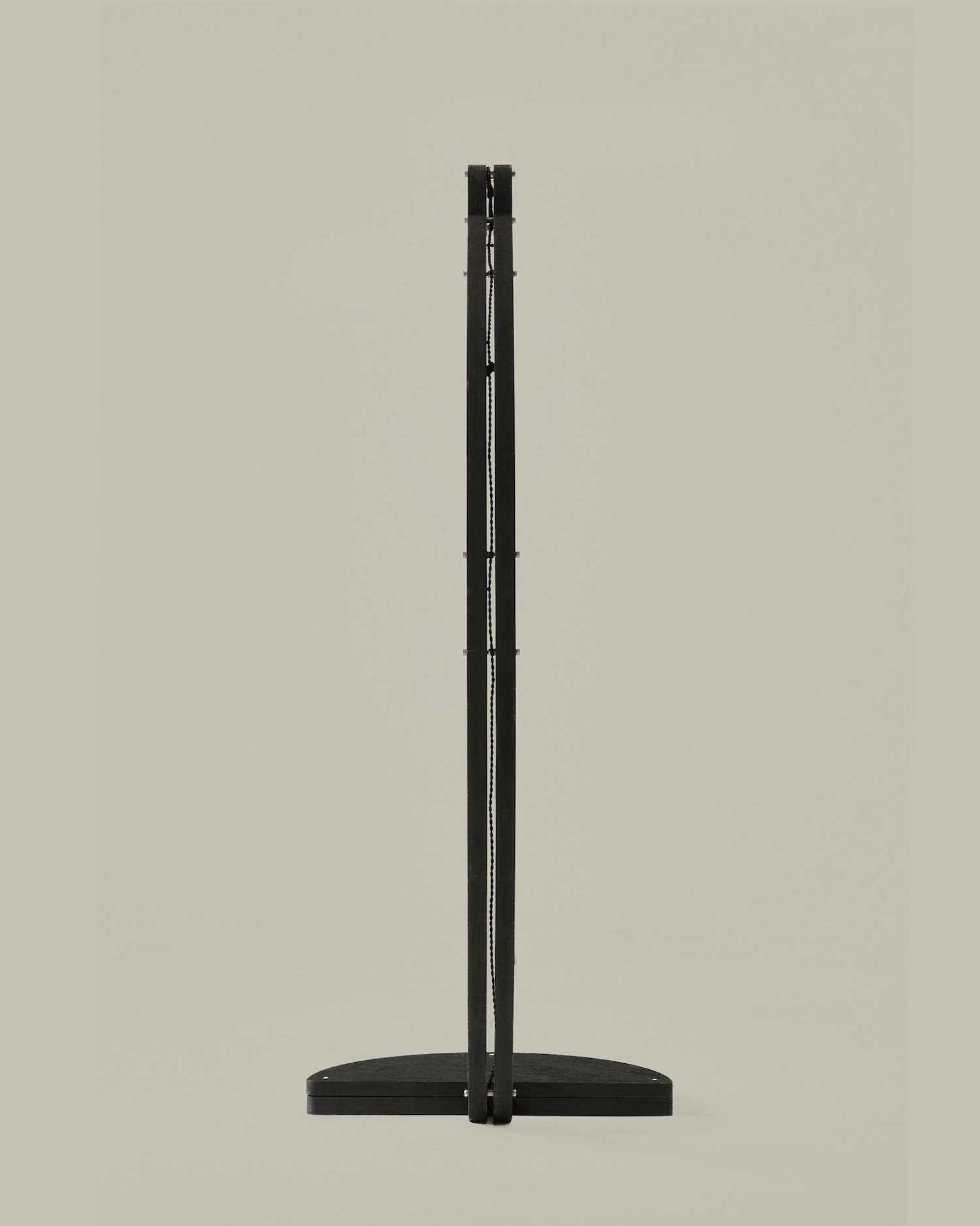 What makes this translation so compelling is its refusal to romanticize tradition. Instead of hiding the mechanics of construction beneath decorative flourishes, the designer celebrates the raw honesty of industrial joinery. Those exposed bolts and nuts serve as more than functional elements; they become a kind of visual punctuation that reads as both brutalist intervention and meditative rhythm. The single power cable running along the structural axis reinforces this honesty, turning electrical necessity into compositional element.
