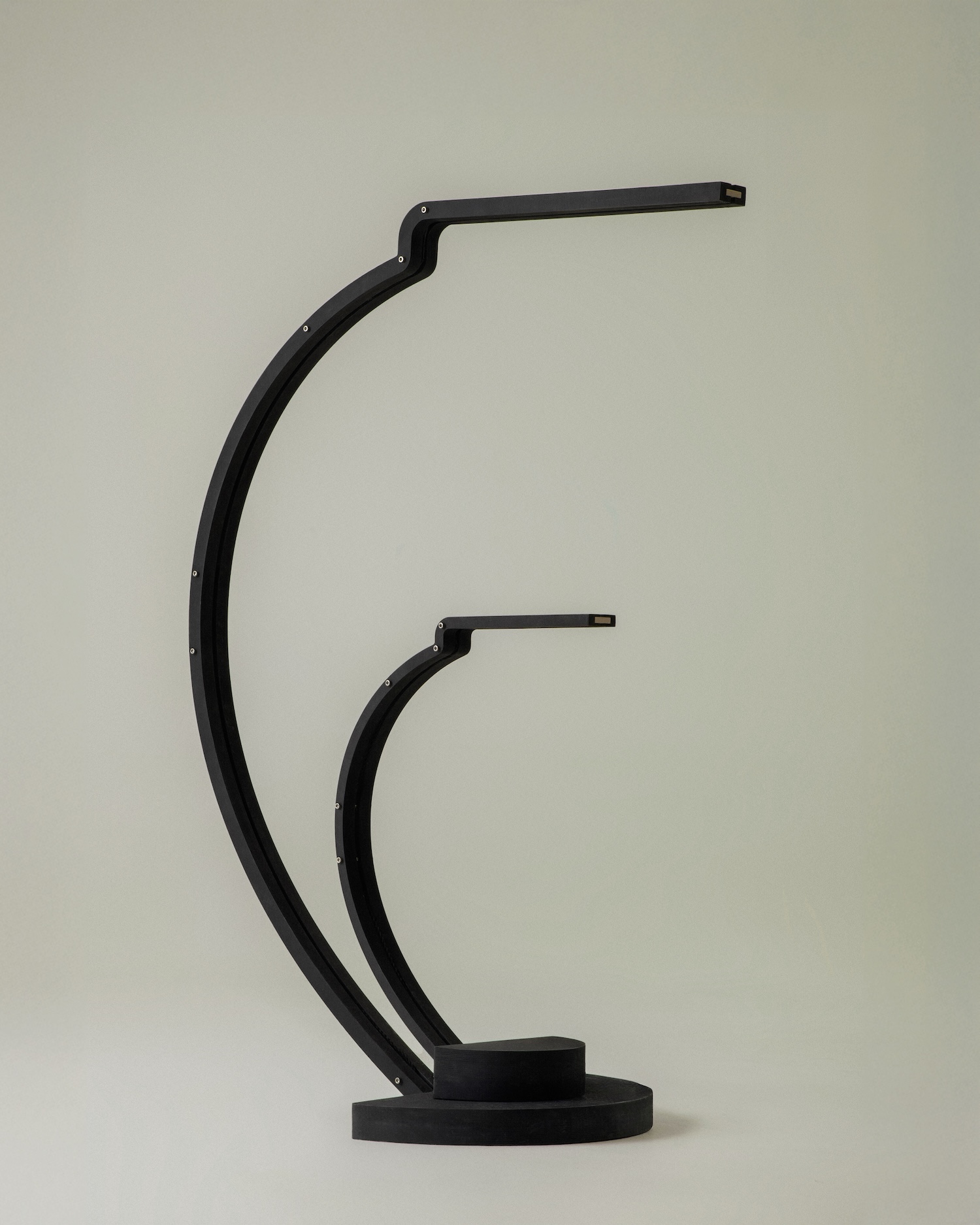 Moonlit is a minimalist lamp created by Seoul-based designer Habin Lee. The Korean Moonjar, with its deliberately imperfect roundness and milky white glaze, has long represented the Confucian ideal of understated elegance. These 18th-century porcelain vessels embodied a philosophy of restraint, their soft, voluminous forms suggesting fullness while maintaining an essential emptiness. Moonlit takes this philosophical framework and rebuilds it using the grammar of modern making: curved wooden frames joined by exposed bolts and nuts create a contemporary vessel for light rather than grain or water.