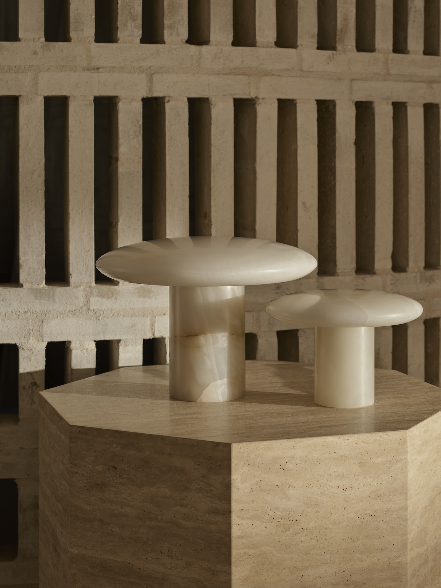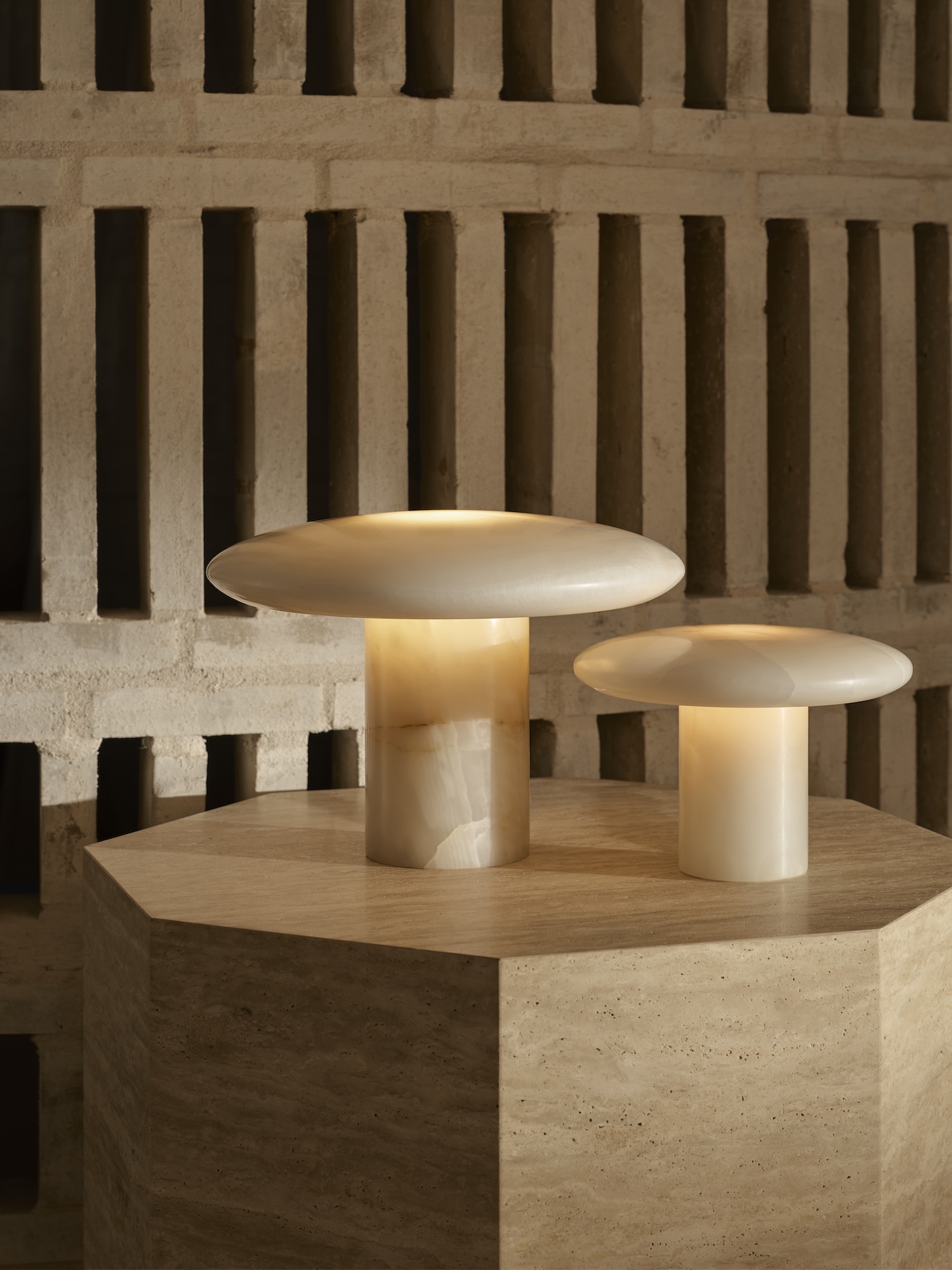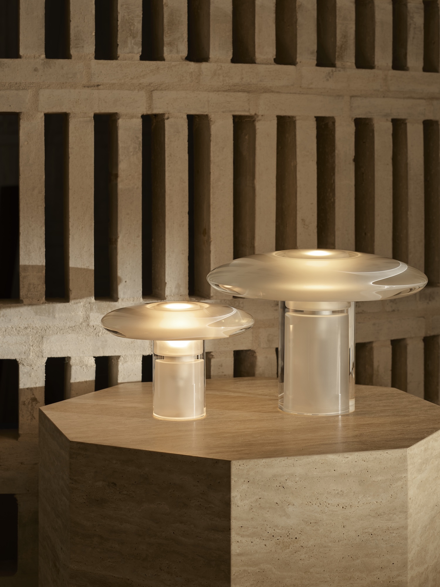 “Nola was designed to highlight the unique qualities of natural stone and crystal glass,” says Fereday. “The intention was to create a timeless object that feels calm, grounded, and enduring, while offering a soft, atmospheric light.”